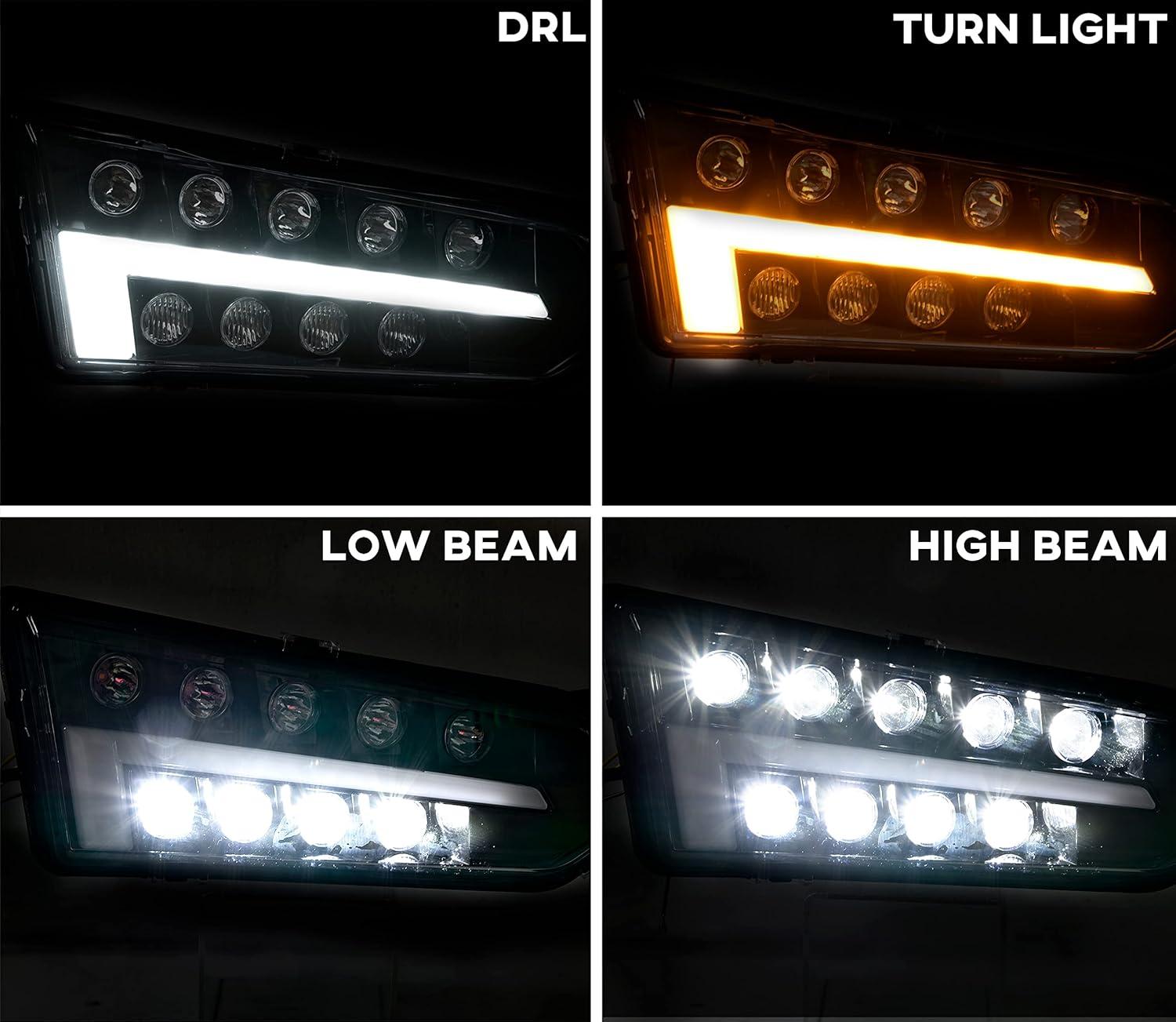 Full LED design – Daytime Running Lights (Halo Rings) + Turn Signal Lights + High Beam, high quality LED beads are used, brighter than halogen lights and energy saving, reaching 3600 Lumens; High penetration, more concentrated and brighter light sources, ensure driving safety