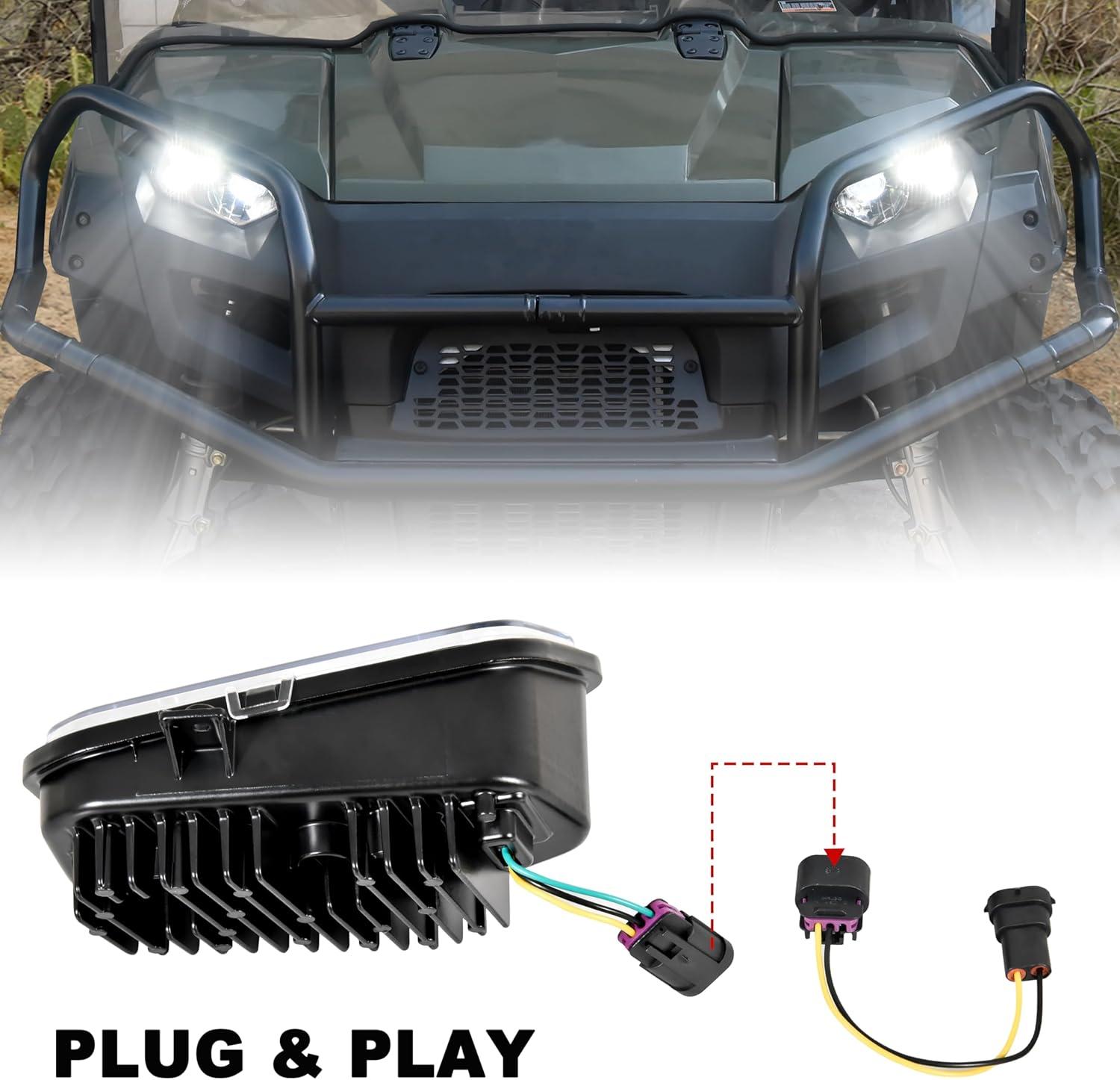 Perfectly match – Compatible with Polaris Ranger 570 Full Size 2016-2025; Perfect and accurate replacement of original headlights without modify the vehicle and changing any screws