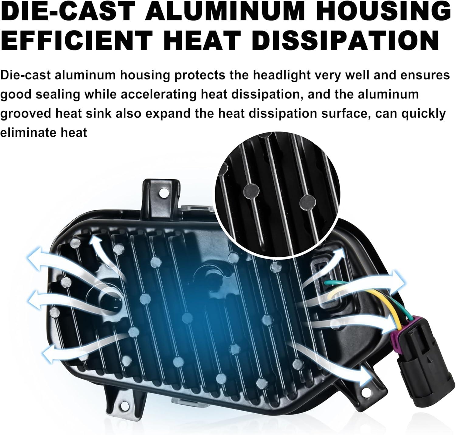 High performance – High quality ABS material and die-cast aluminum housing, with advanced air duct design, make heat dissipation much faster; IP67 waterproof protection and the internal protection mechanism, make it no flickering or failure; Dust and shock proof, abrasive resistant coating, provide excellent UV protection, strong aging resistance, effectively prevent the lens from yellowing