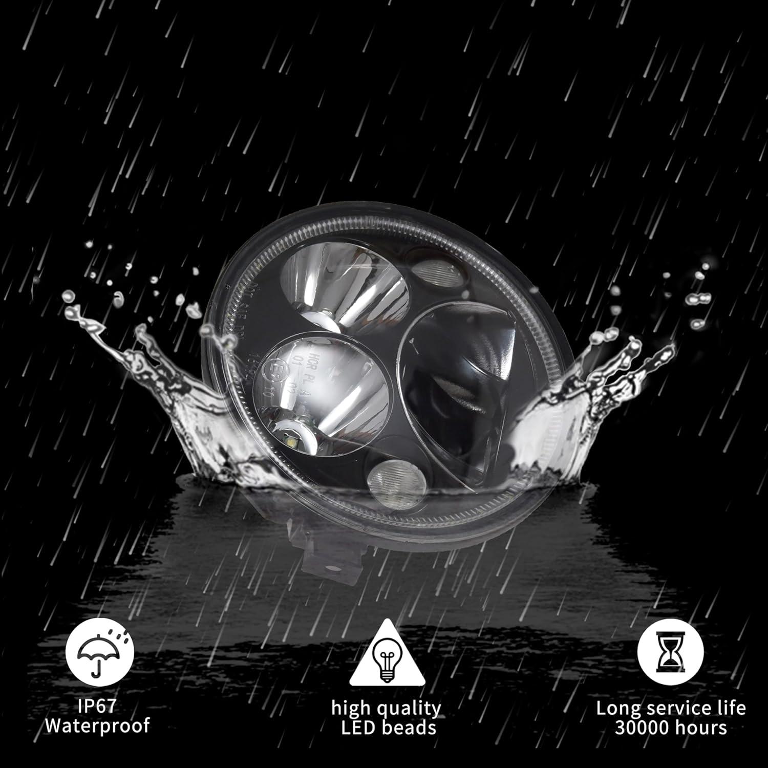 Built-in high quality LED beads, brighter than halogen lights and energy saving, the illumination is reaching 2500 Lumens; Die-cast aluminum housing, advanced air duct design, grooved heat sink, fast heat dissipation