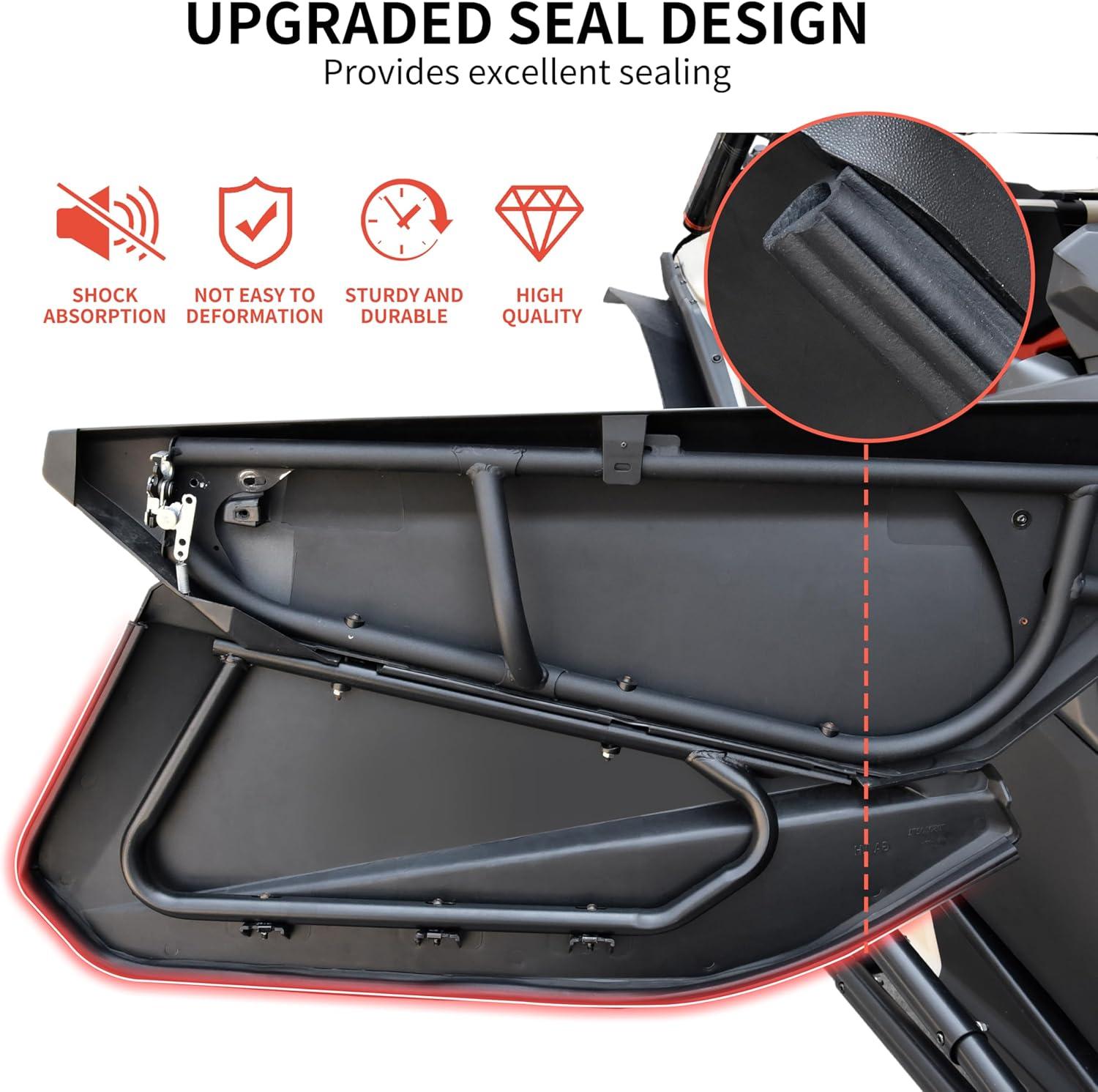 Extends the doors to fill in the void space, and block dirt & debris to enter the cab. Black rubber gaskets included, which can reduce noise and seal the door edges