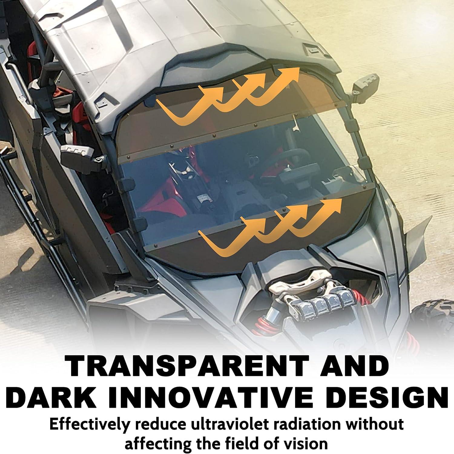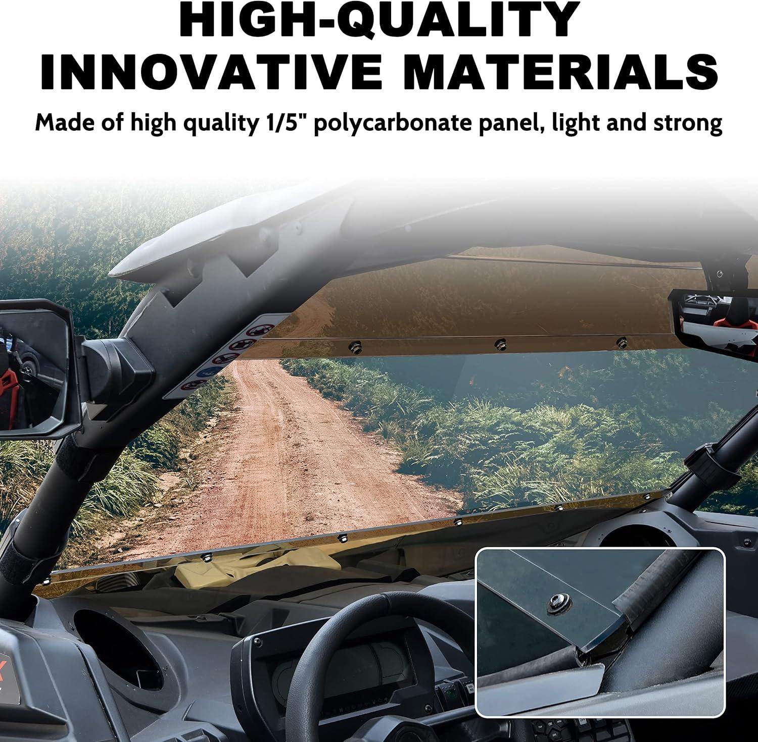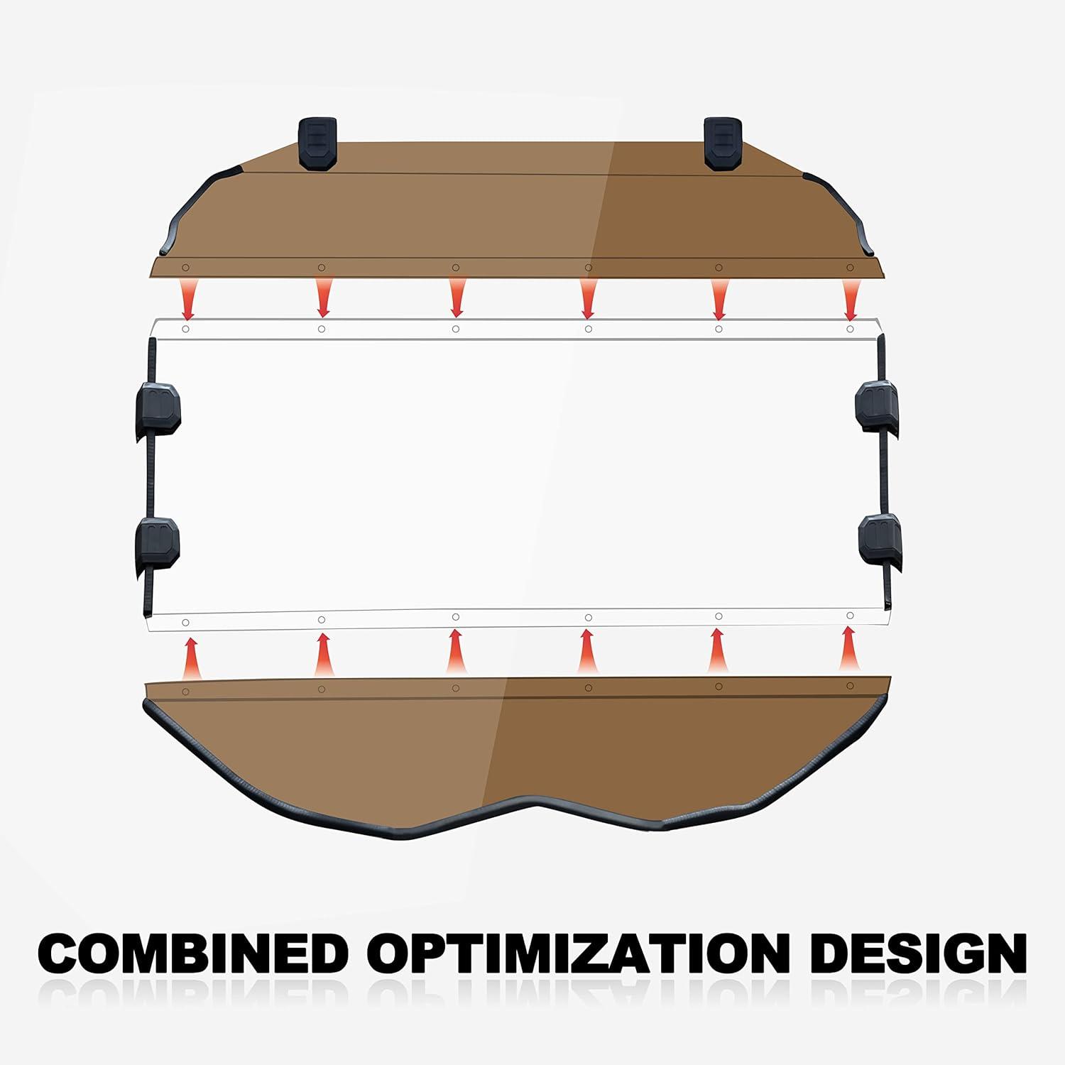 [HIGH-QUALITY INNOVATIVE MATERIALS] – Made of high quality 1/5″ polycarbonate panel, light and strong, make you comfortable when driving in any season; Polycarbonate is more stronger than glass; Hard coat layer for durability