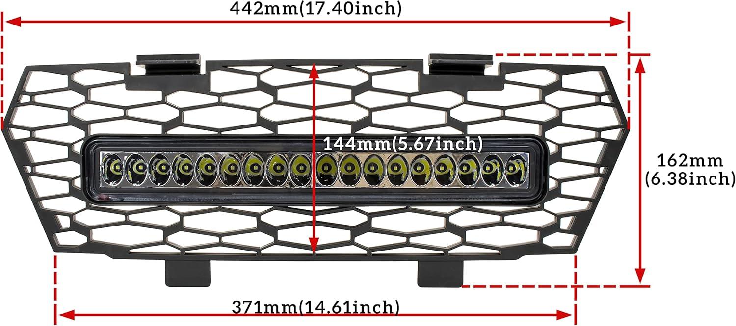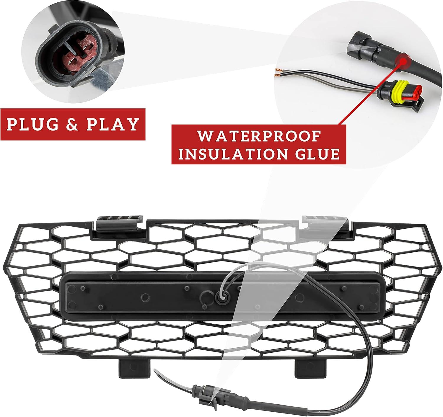 Easy to install; Plug & play; Package includes 1PCS Mesh Grill with LED Light(Please refer to the installation video before your installation)