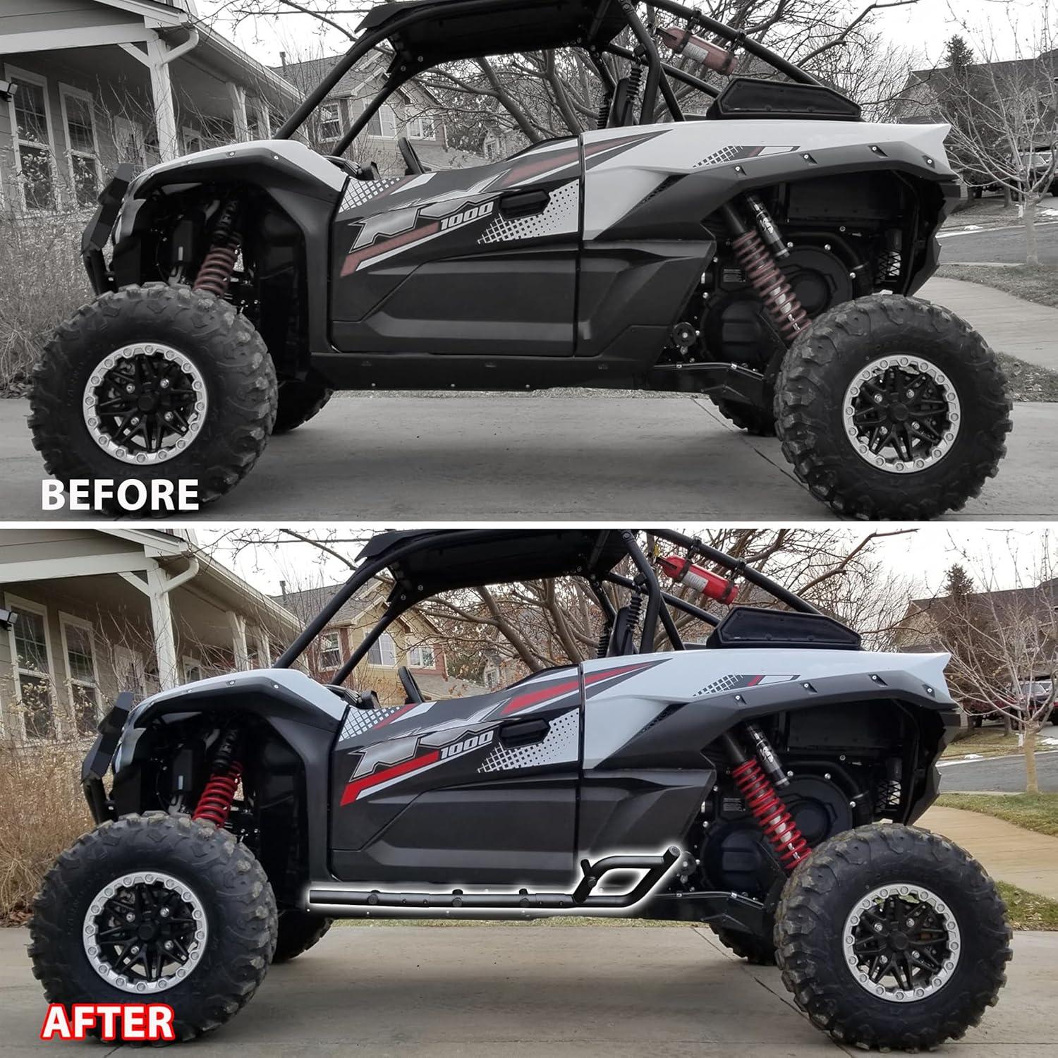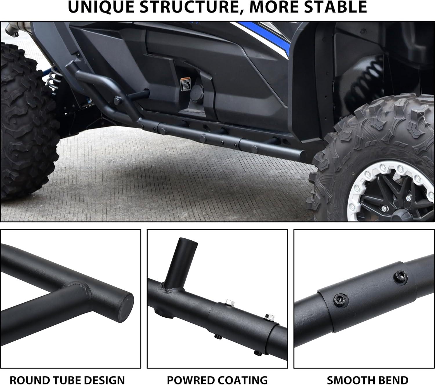 All-Round Protection: It not only acts as a buffer to protect the side wheels and rear wheels from unforeseen objects on the trail or on the job site, but also serve as a step to help get in and out of the vehicle