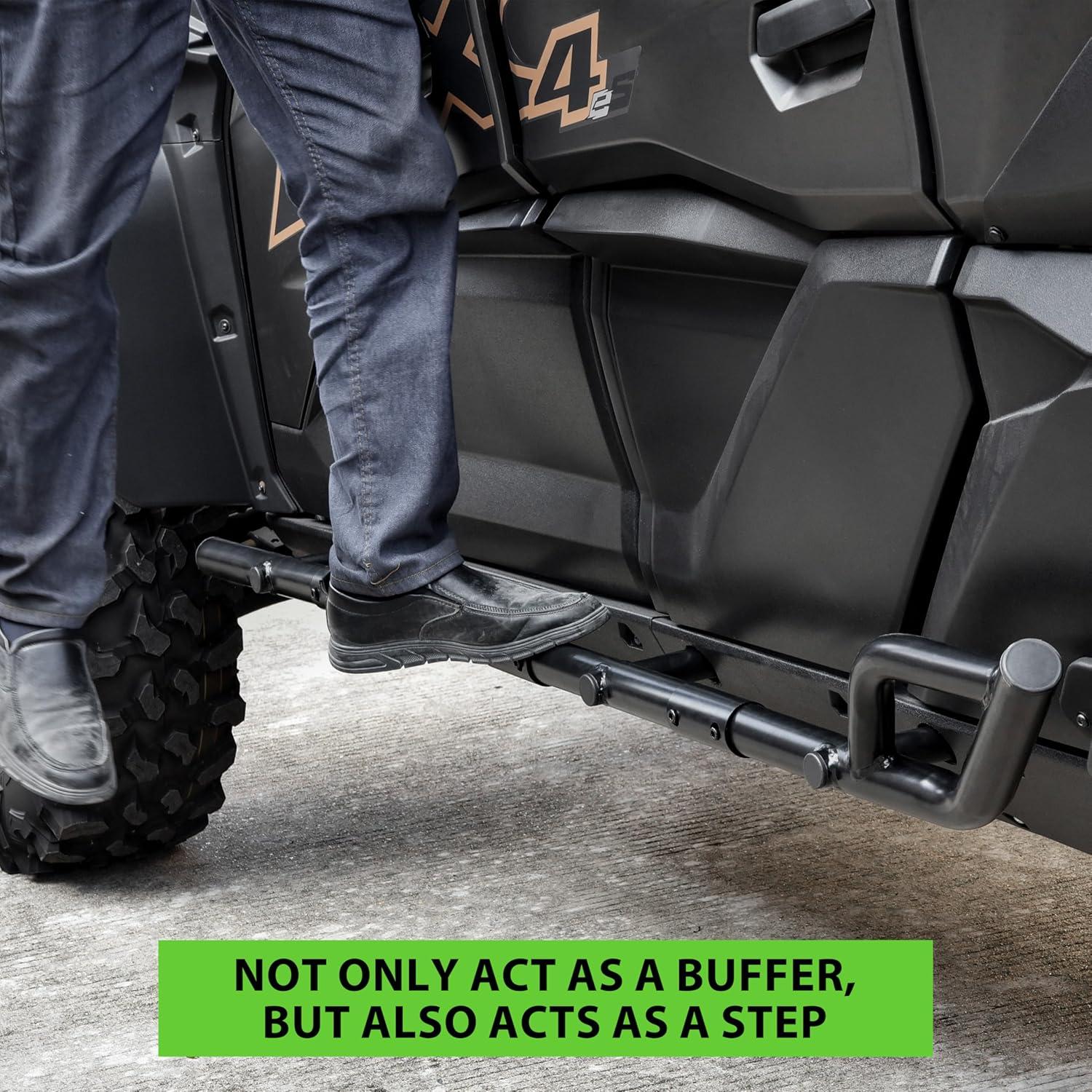 All-Round Protection: It not only acts as a buffer to protect the side wheels and rear wheels from unforeseen objects on the trail or on the job site, but also serve as a step to help get in and out of the vehicle