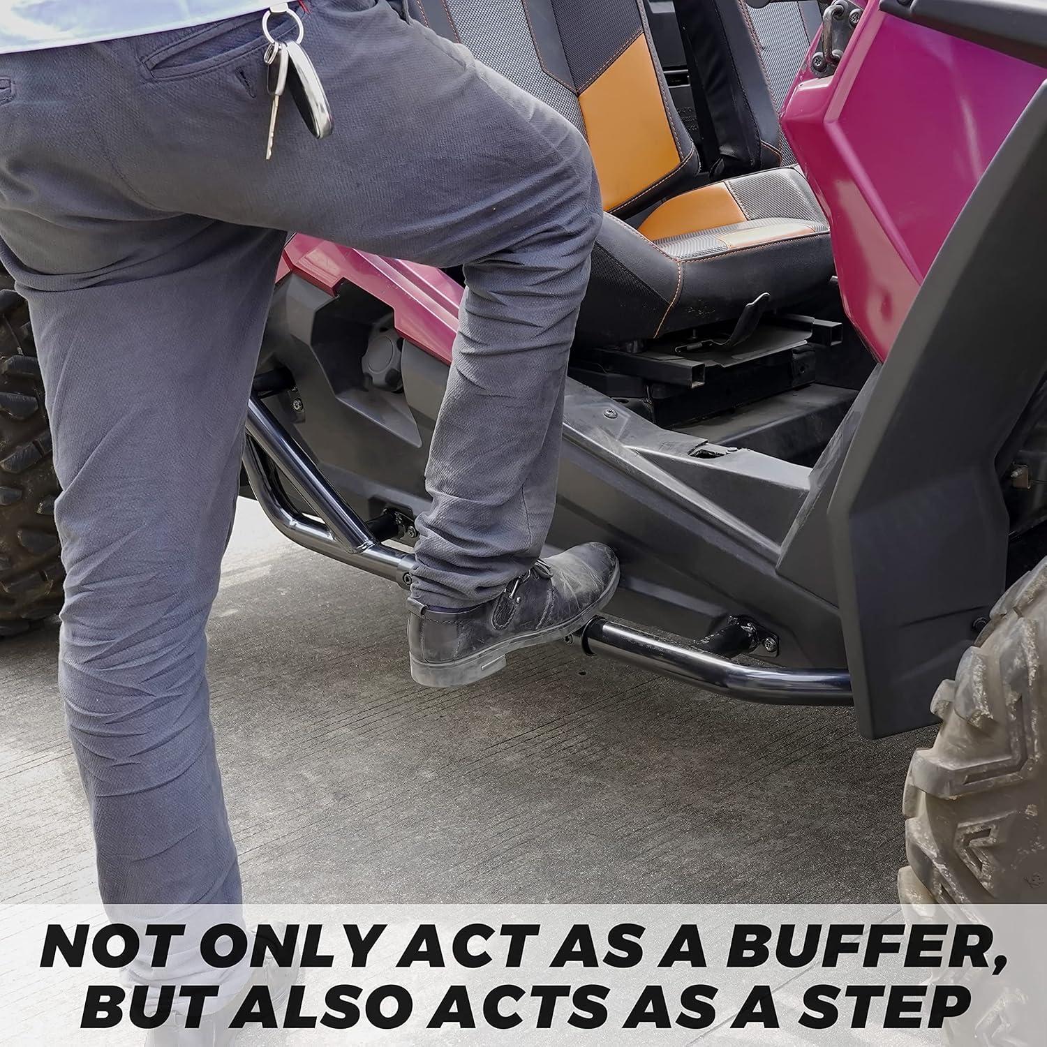It not only act as a buffer to protect the side wheels and rear wheels from unforeseen objects on the trail or on the job site, but also serve as a step to help get in and out of the vehicle