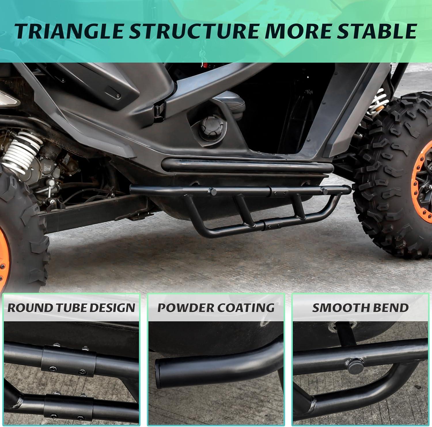 All-Round Protection & Side Steps: These nerf bars act as a robust buffer to protect your vehicle's side plastics and rear wheels from rocks, branches, and other off-road obstacles; Their superior load-bearing capacity also makes it serves as convenient side steps for easy entry and exit for passengers who need