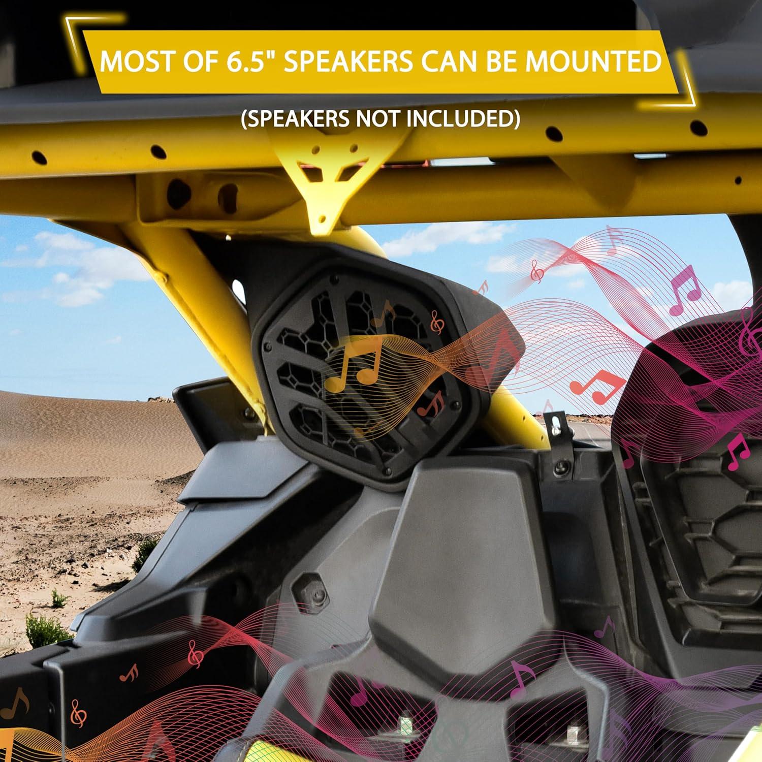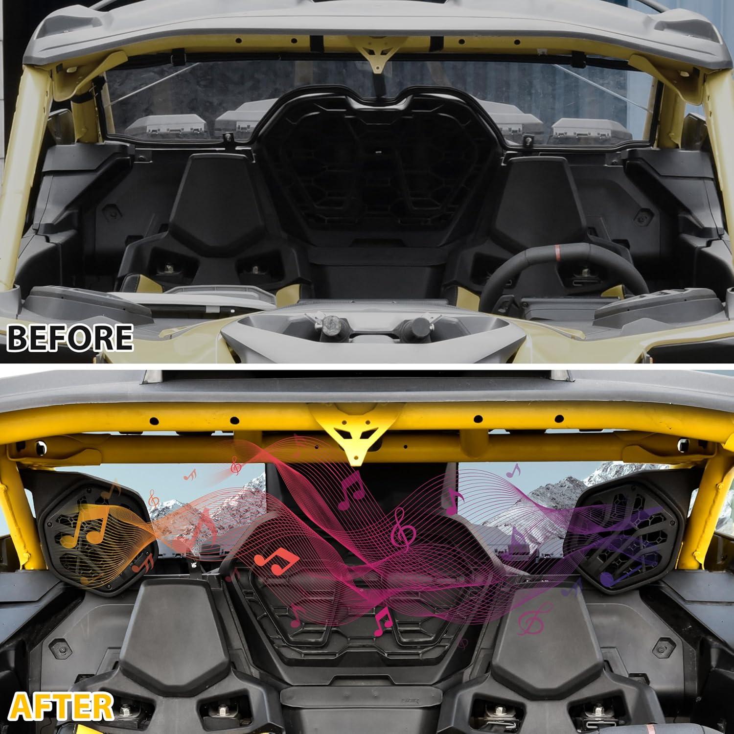 [PERFECT FIT] – Compatible with Can-Am Maverick R / R X / R X RS 2024+, Maverick R MAX / R MAX X / R MAX X rs / R MAX X rs with Smart-Shox 2025+ models (Please refer to the compatible list in description); Notice: The speakers are not included, most of 6.5 inches speakers can be installed on this panel; Not compatible with rear windshield