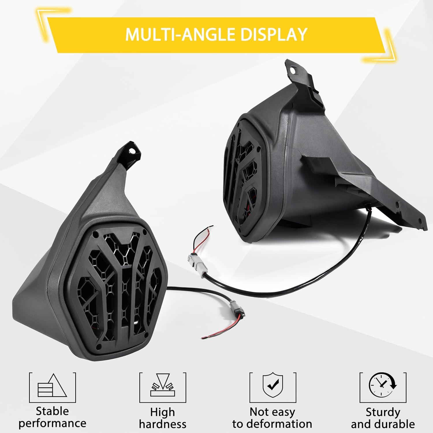 [EASY INSTALLATION] – Easy to install, No cutting required, accurate size; Package include: One pair of rear speaker pods with mounting hardware and installation manual; Please refer to the installation video before your installation; NOTE: SPEAKERS NOT INCLUDED