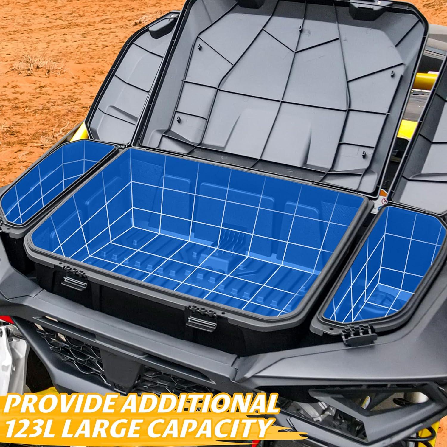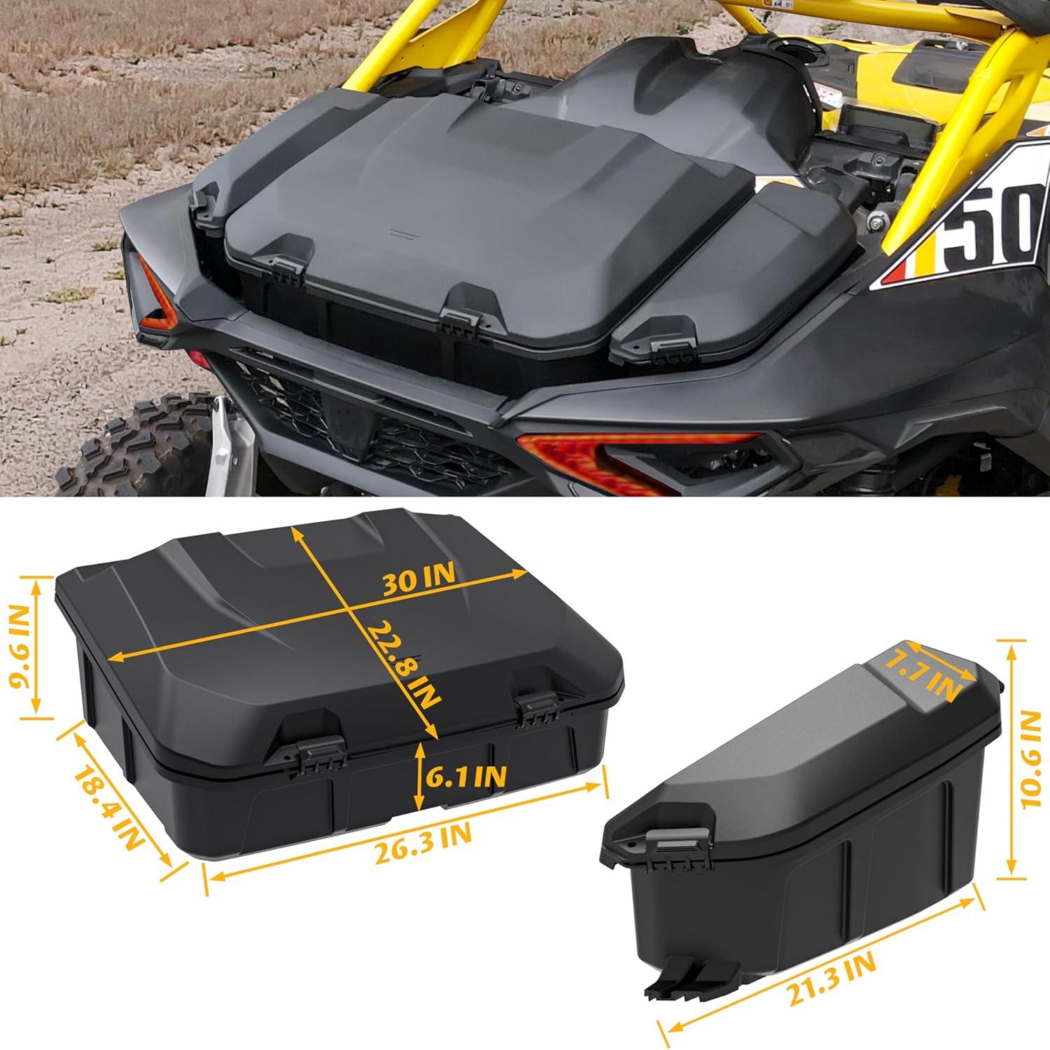 SAUTVS Poly Water Resistant Large Capacity Rear 96L Storage Cargo Trunk Box & 13.5L Side Cargo Storage Boxes Set for Can-Am Maverick R MAX X RS 2024+ Accessories (3PCS, Replace #715007182, 715007372)