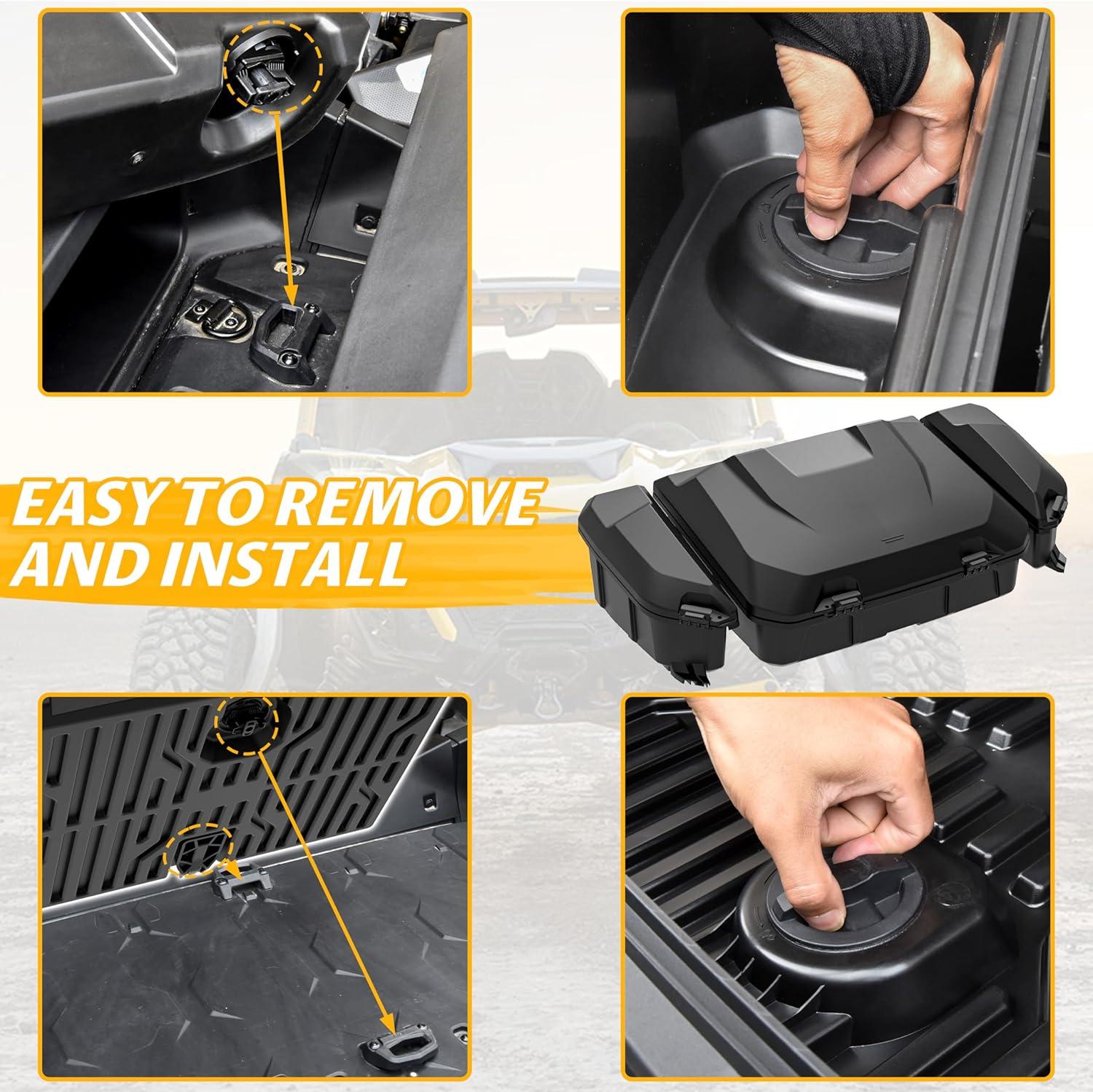 [EASY TO REMOVE AND INSTALL] – Easy to remove with to the Lin Q system. Installation via Lin Q mounts on the vehicle, requires no additional tools or hardware (Can refer to the instructional video in the listing and the supplied instructions before installation); Package include: 1PC rear cargo storage box and 2PCS side cargo storage boxes; NOTICE: This storage box is not a cooler, please notice that before purchasing