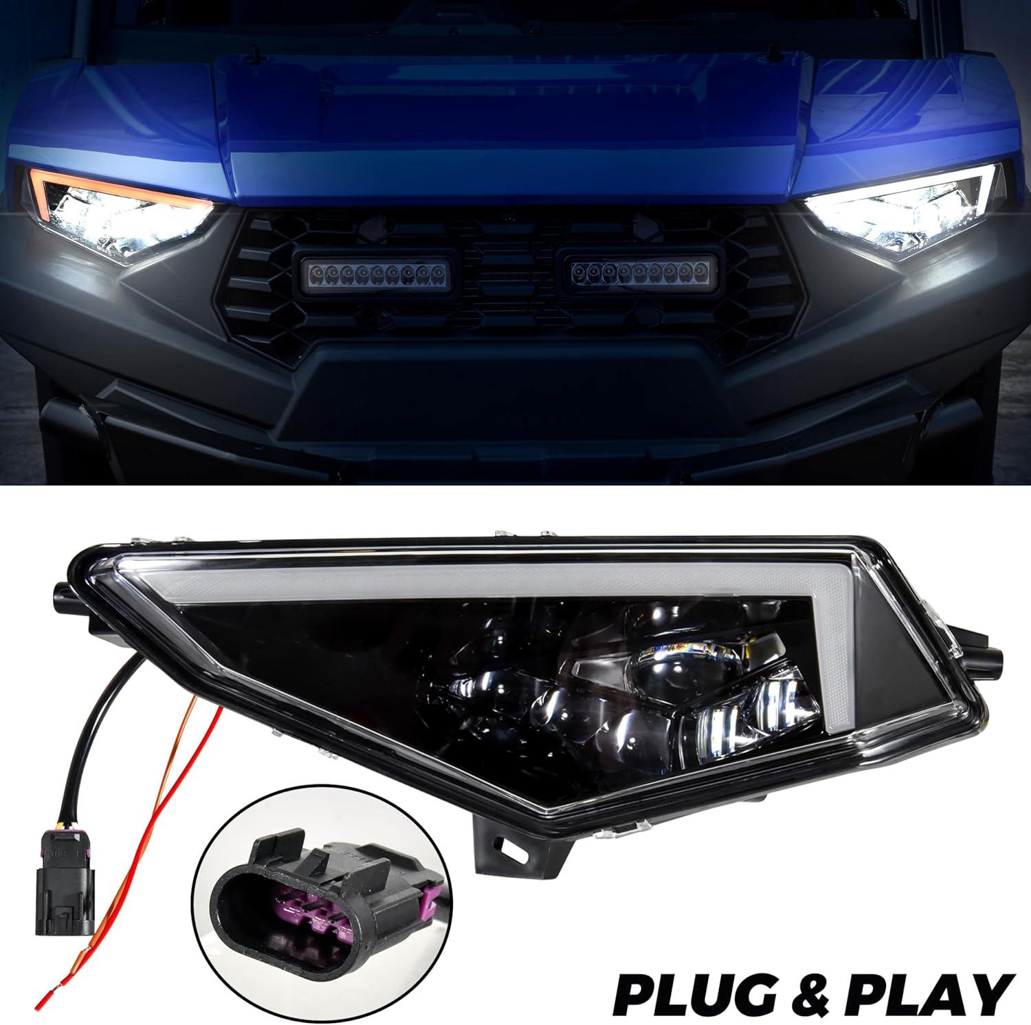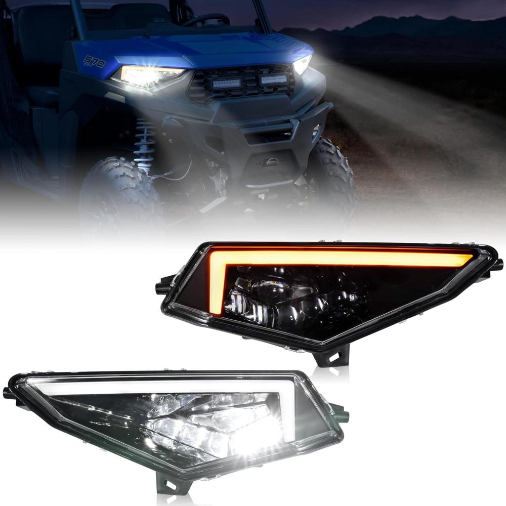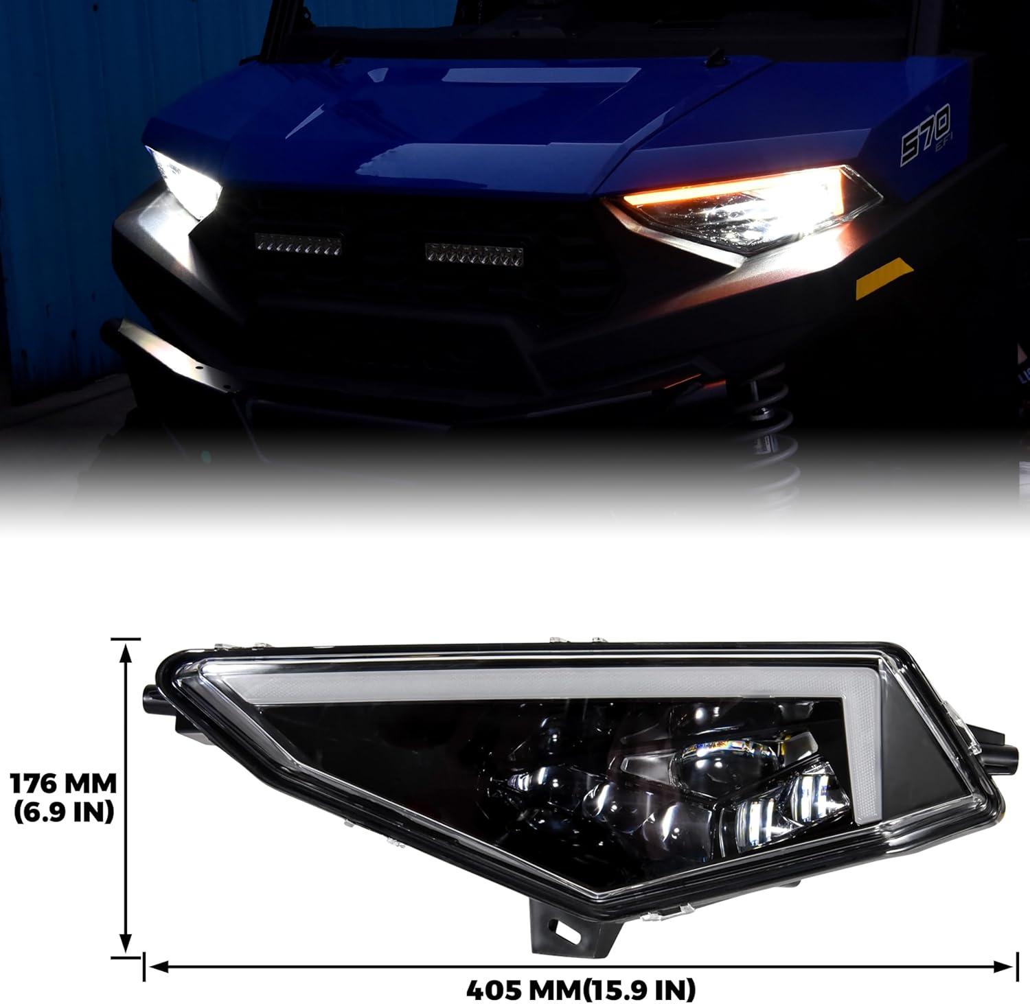 Perfectly match – Compatible with Polaris Ranger SP 570 / CREW SP 570 2022+ (Please refer to the compatible list in description); Perfect and accurate replacement of original headlights without modify the vehicle and changing any screws