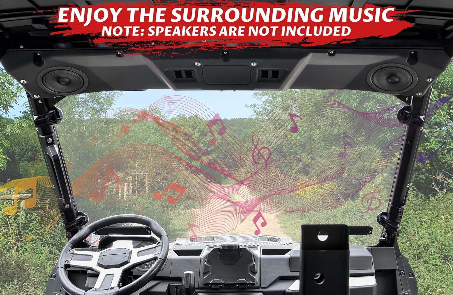 Install under the front roof, not only save you more space, but also let you enjoy the surrounding music and provide you with the ultimate experience