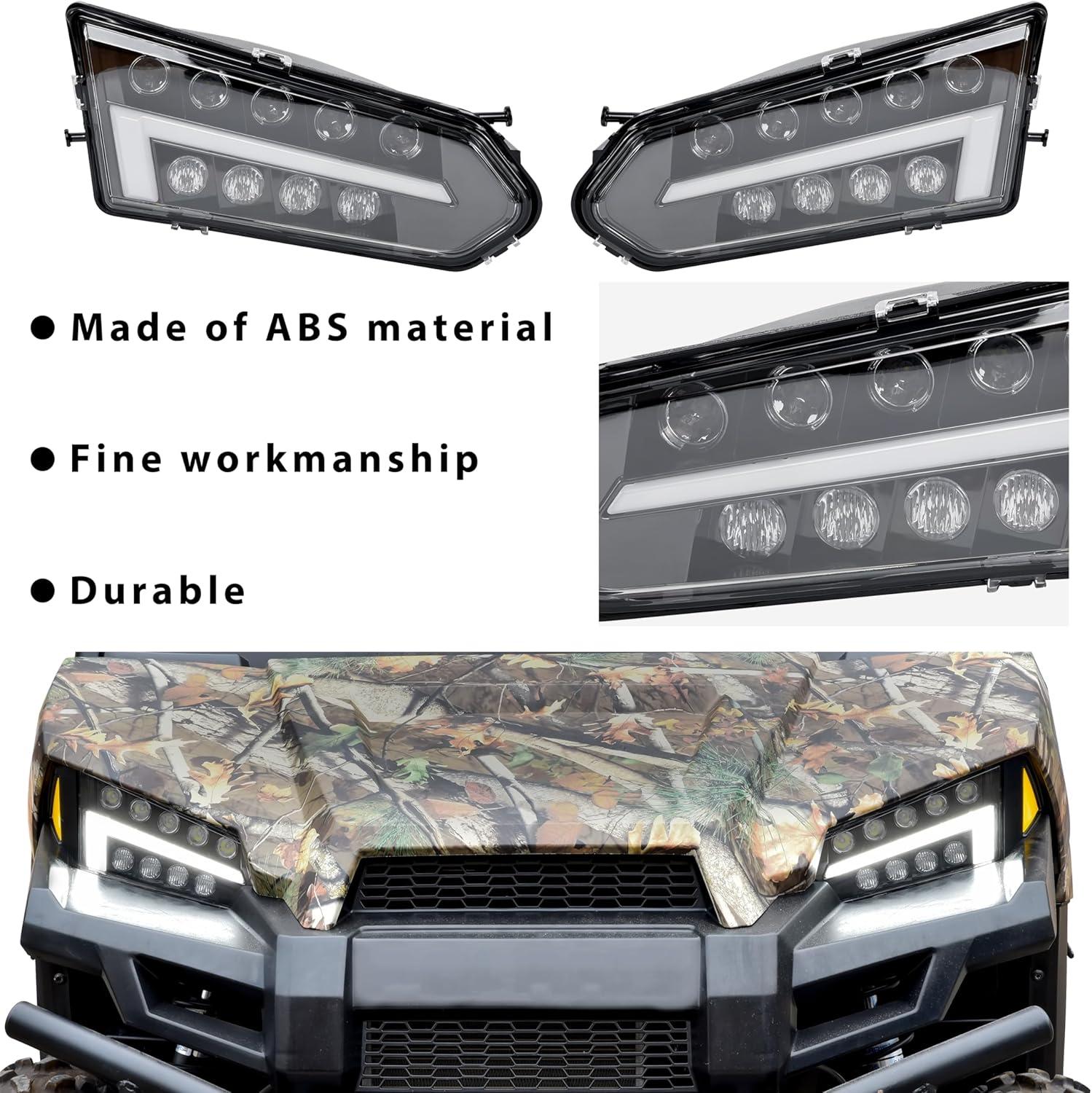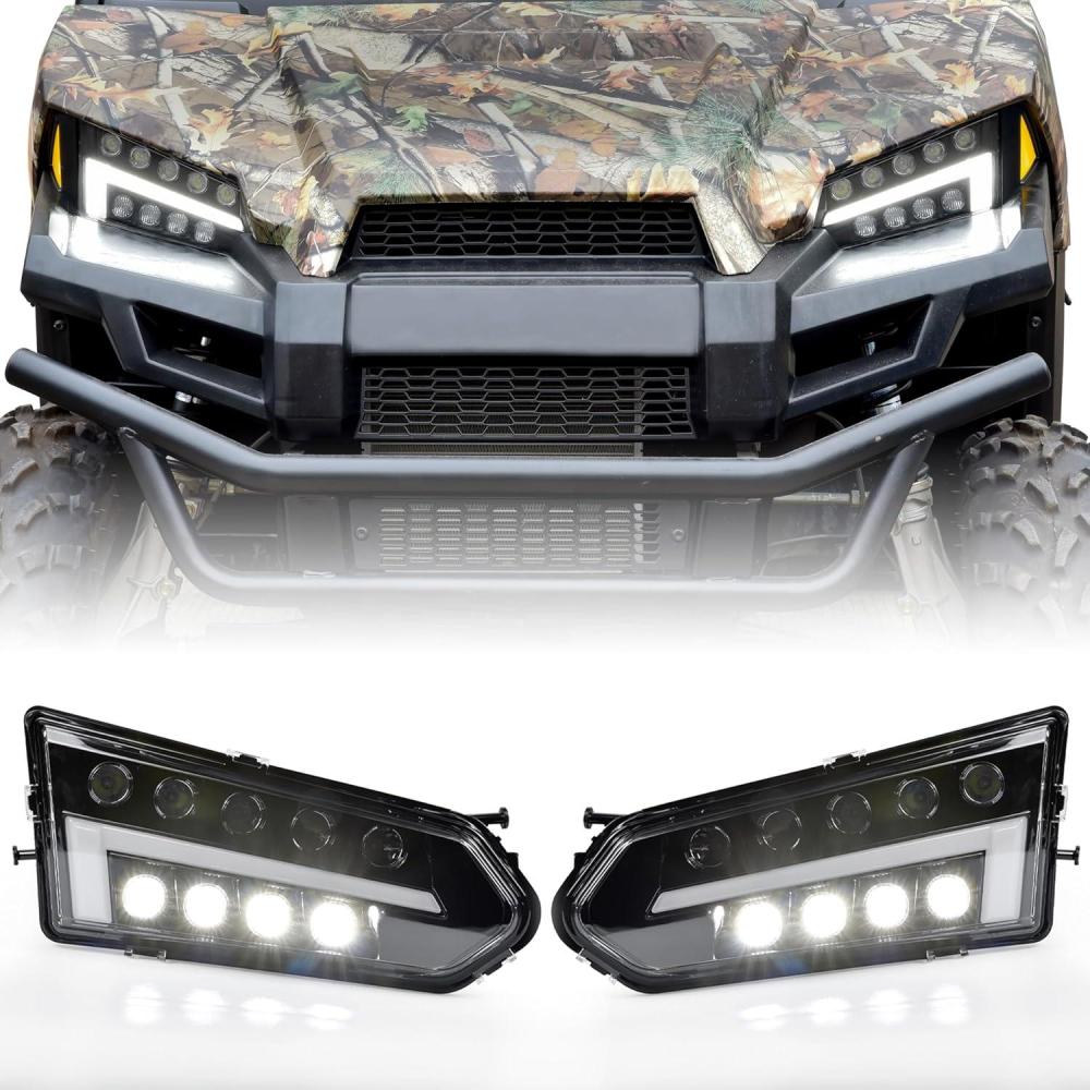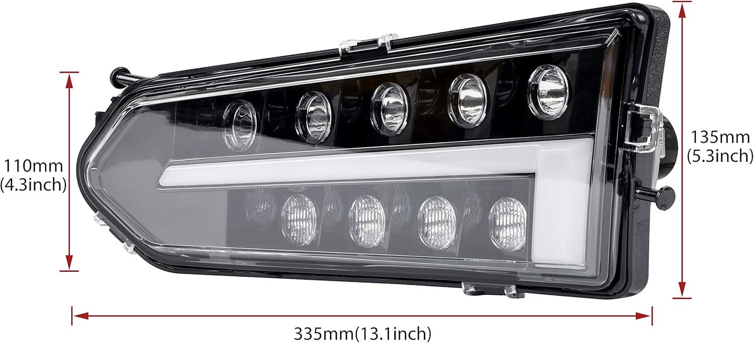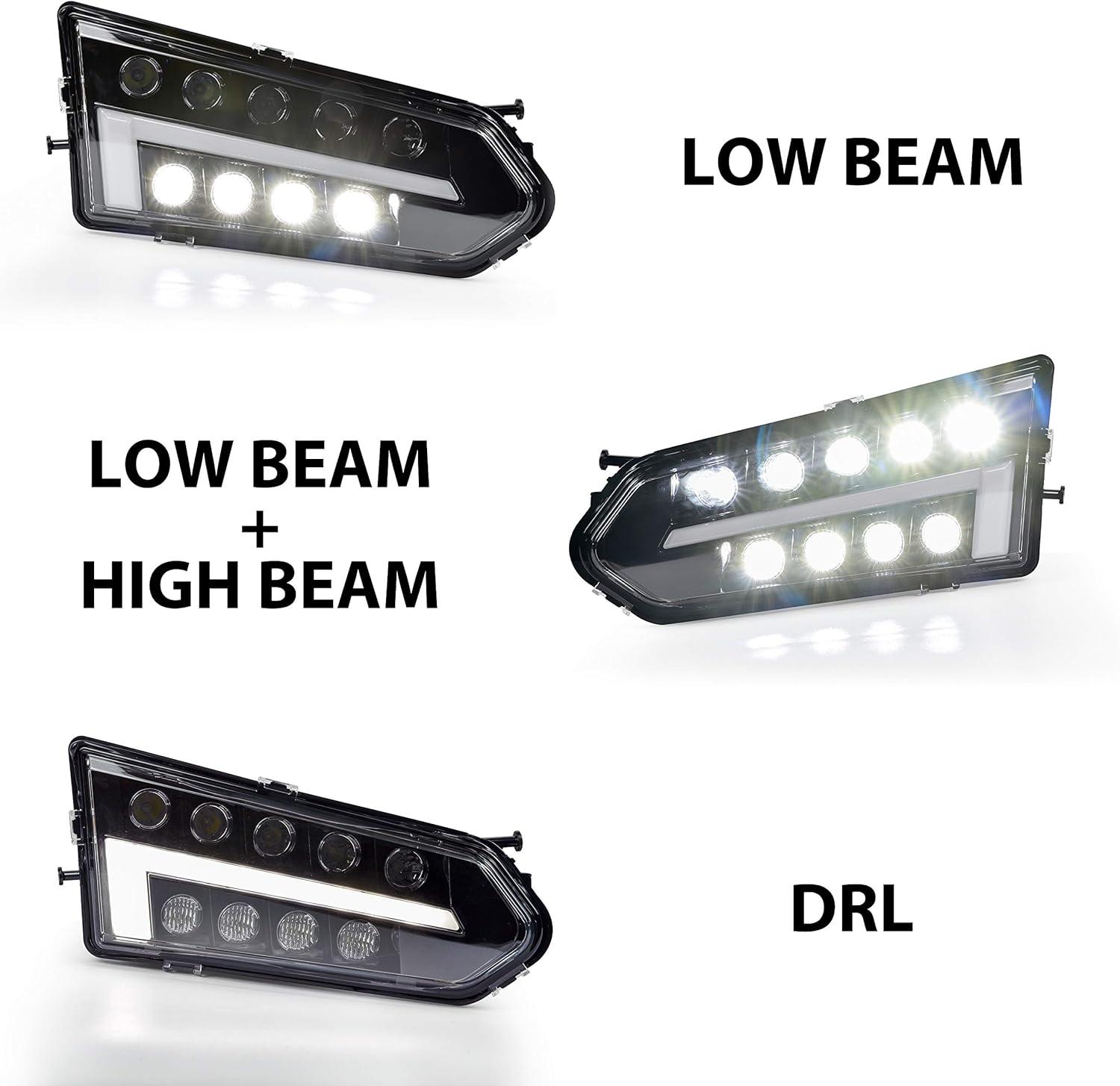 Full LED design – Daytime Running Lights (Halo Rings) + High Beam, high quality LED beads are used, brighter than halogen lights and energy saving, reaching 3600 Lumens; High penetration, more concentrated and brighter light sources, ensure driving safety