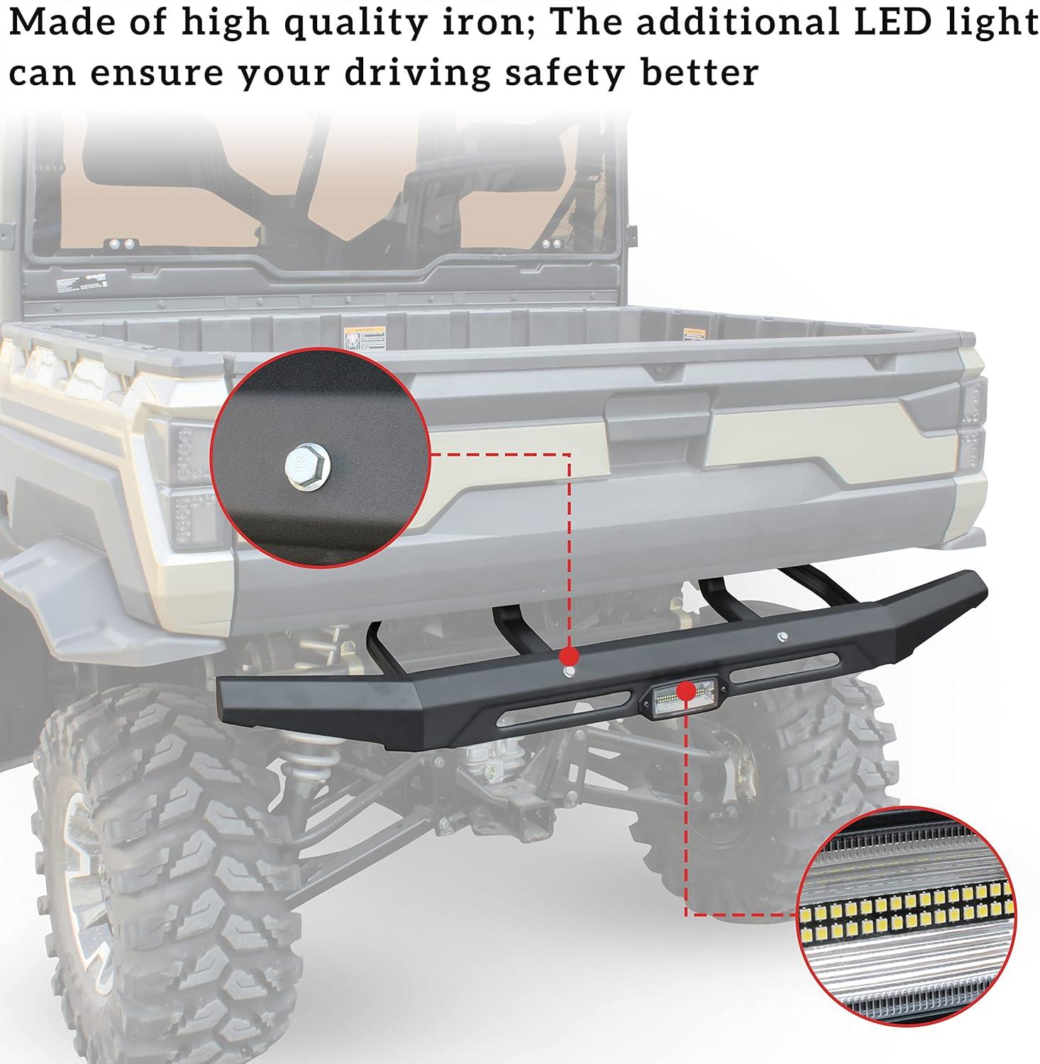 Made of high quality iron; Black powder-coated finish complements the tough look of your RANGER; The additional LED light can ensure your driving safety better