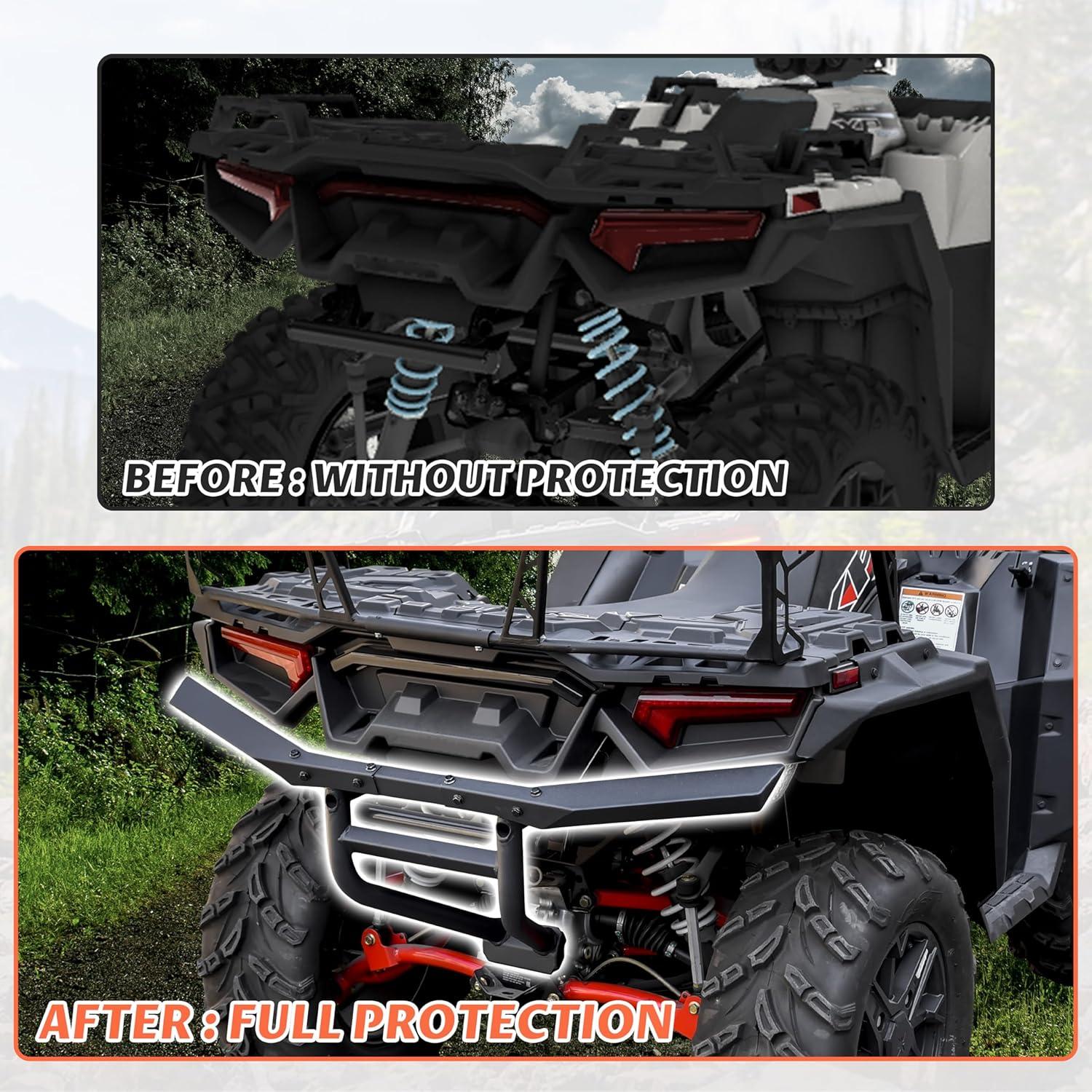 Full coverage design, without sacrificing performance or styling, protects the rear of your vehicle, from unforeseen objects on the trail or on the job site