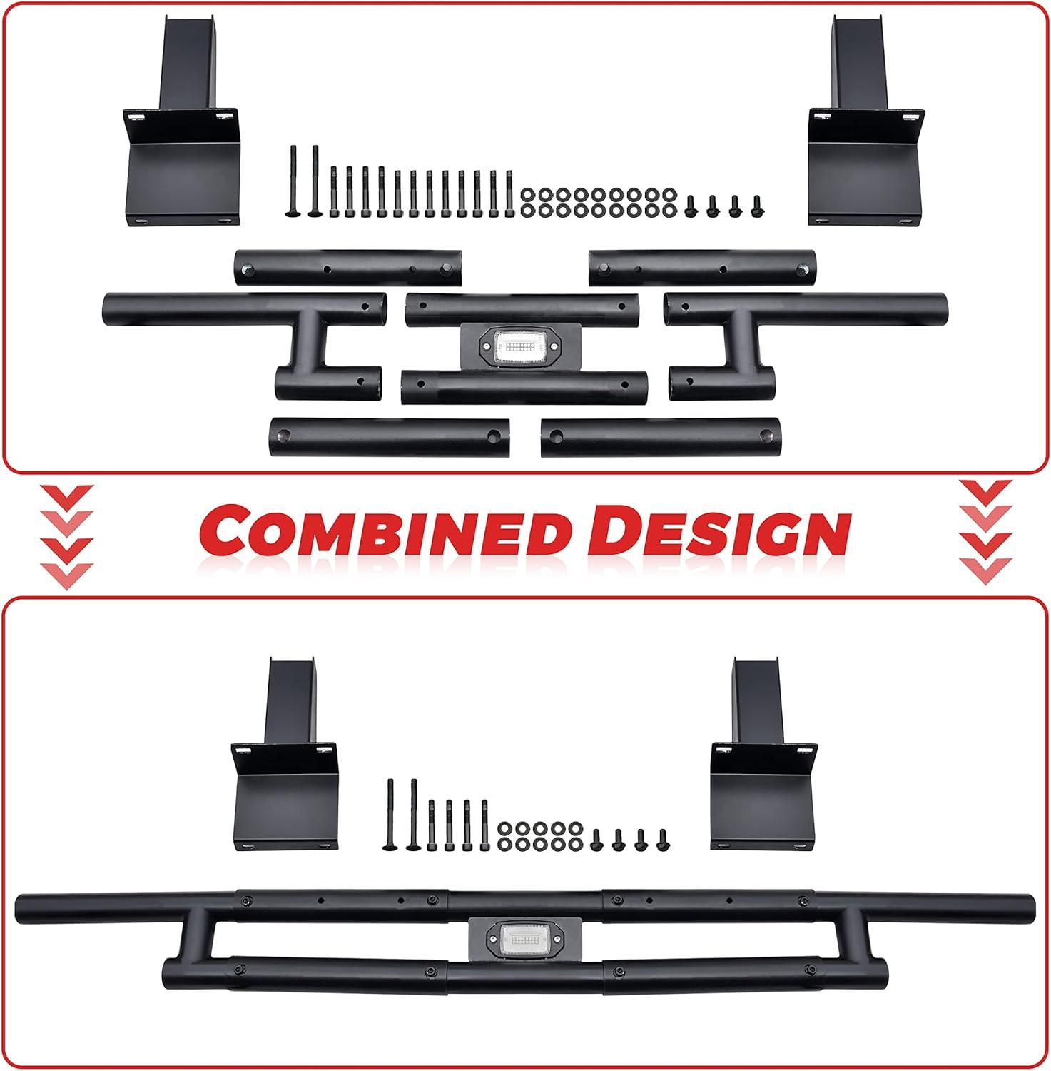 Integrated mounting holes for easy, secure installation; Even if the cargo bed is fully tilted, the bumper still won't touch the tires; Package include:1 set of rear brushguard with LED, all the mount hardware (Please refer to the installation guide video in this listing before your installation, you need to prepare the extension wire by yourself in advance)