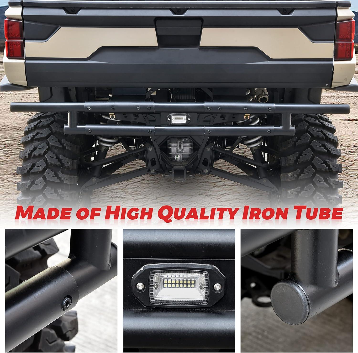 SAUTVS Rear Bumper with Light for Polaris Ranger XP 900 1000, Heavy Duty Rear Brush Guard Bumper with LED Accent Light for Polaris Ranger XP 900 2013-2019/ Ranger XP 1000 2018-2025 Accessories