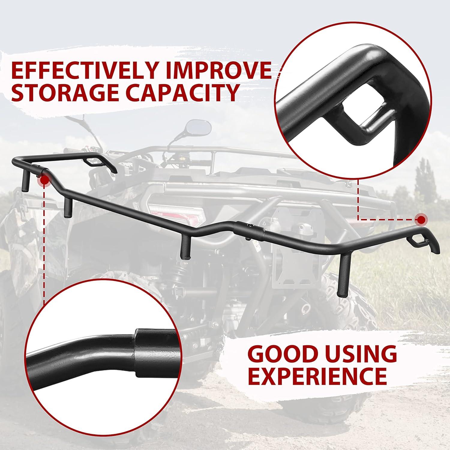 It is made of high-quality heavy-duty steel tube, which increases the loading capacity, and adds additional storage space of the rear rack. Scratch-resistant and black powder-coated finish shows the aggressive look of your Sportsman.