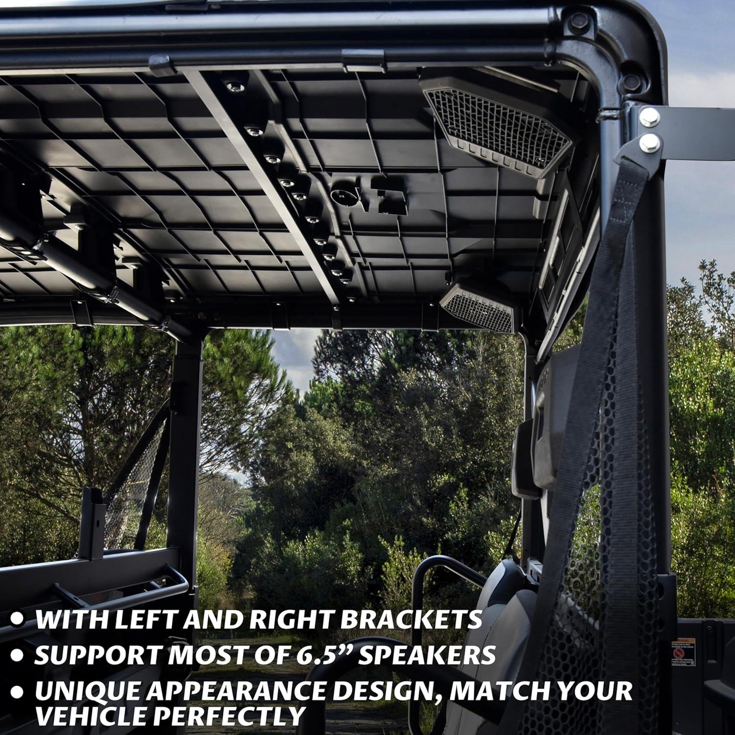 Easy to install; Package include: One Pair of 6.5″ Roof Speakers Pods with Brackets and all the hardware, installation instruction (Please refer to the installation video in the listing); NOTE: SPEAKERS NOT INCLUDED, most of 6.5 inch speakers(mounting depth<50mm) are supported