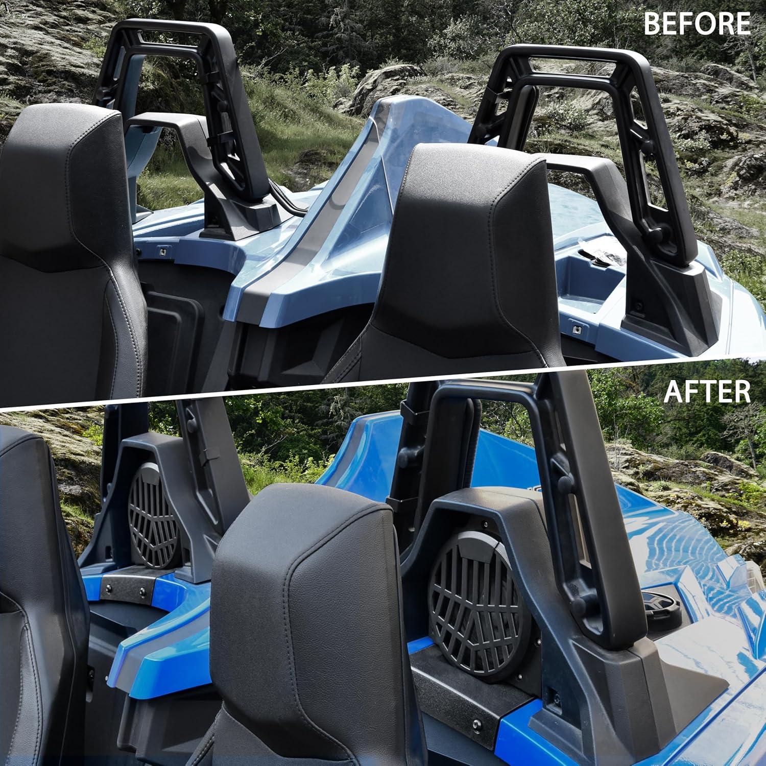EASY TO INSTALL: The speaker pods are designed to fit behind the head in the rear deck hump area of the Polaris Slingshot. Behind seat speaker pods are designed for 6.5″ speakers and perfectly fit behind the seat under the rear hoops. Please refer to the installation video before your installation