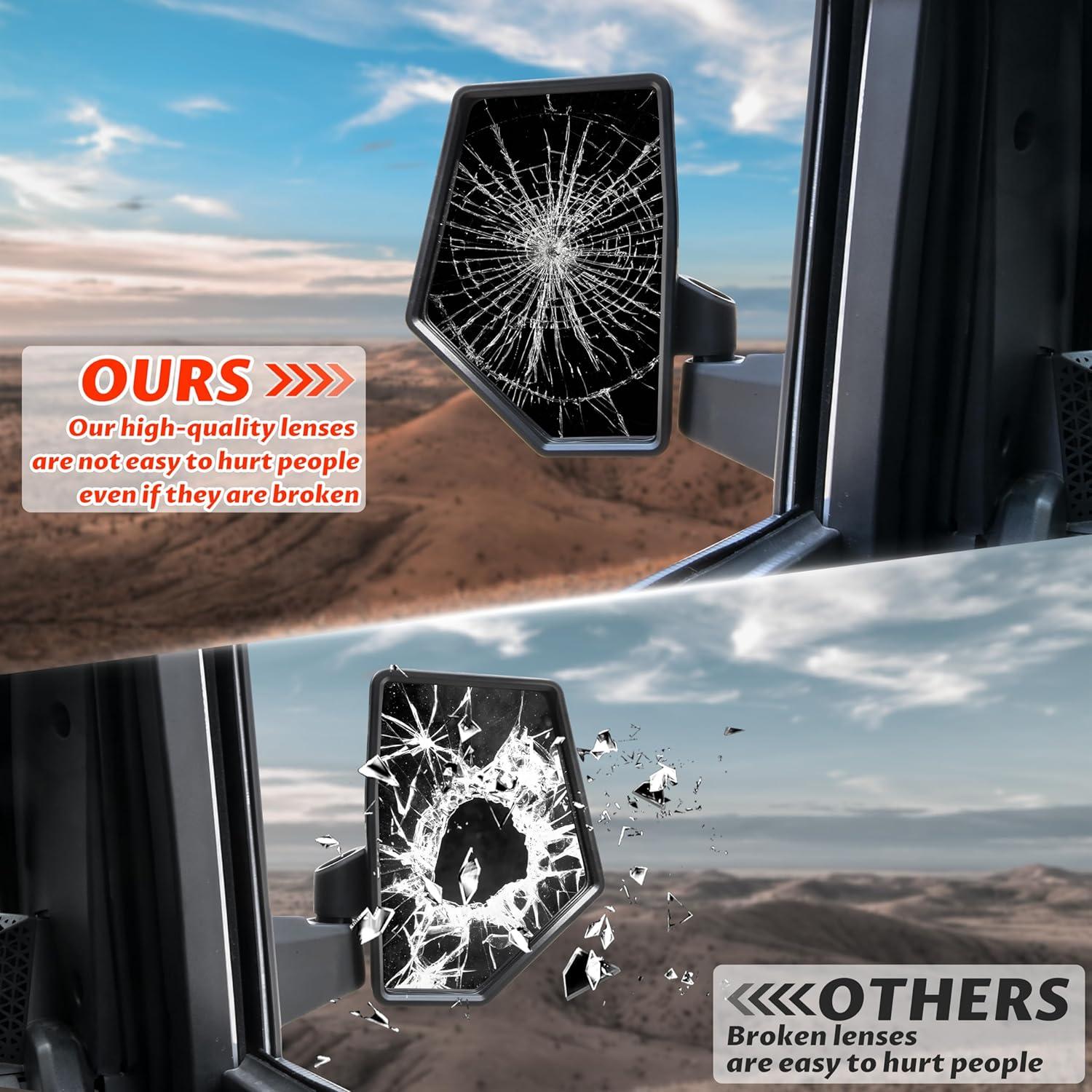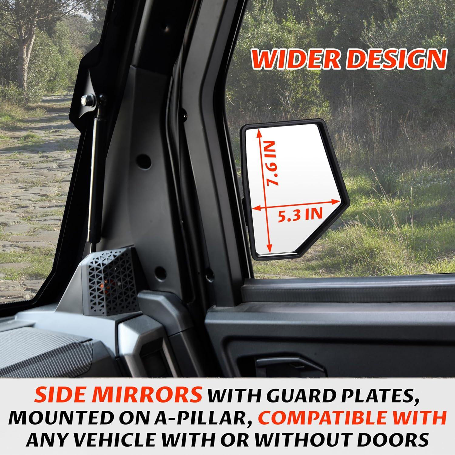 Easy to install, the side mirrors with guard plate mount directly to the vehicle, no drill needed (Please refer to the installation video before your installation)