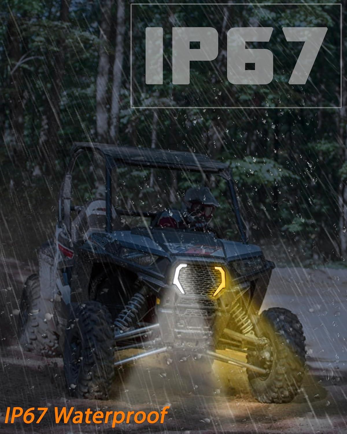 [HIGH RELIABILITY] – High quality LED beads are used, brighter and concentrated light source, even at night or rainy days, you can have a clear vision, ensuring your driving safety; With turn signal function, the internal protection mechanism design make it no flickering or failure; Durable off-road-ready construction, IP67 waterproof protection; Long service time, strictly follow the quality and safety standards, energy saving; High quality ABS material, with strong impact resistance and corrosion resistance, working in all weather conditions