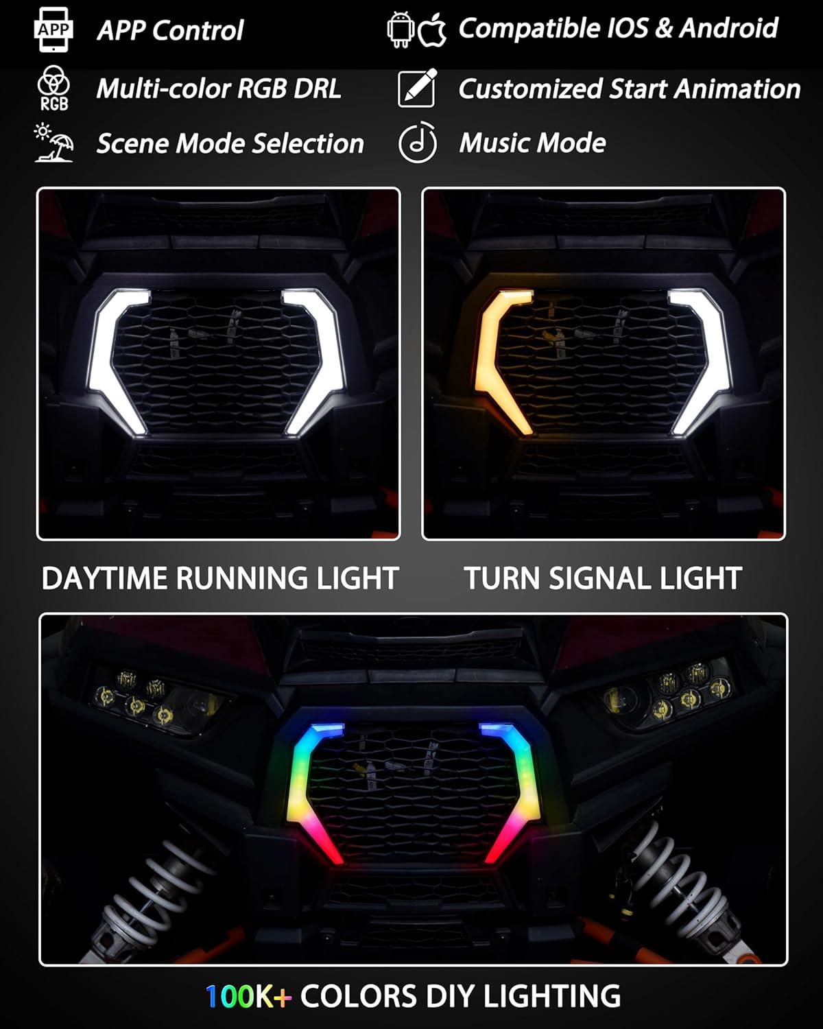 [PLUG & PLAY] – Designed for quick and easy installation, plug and play; Package includes: One Pair of RGB LED Fang Lights with all mounting hardware and installation instructions (refer to the instructional and installation video in the listing and the included instructions before installation)