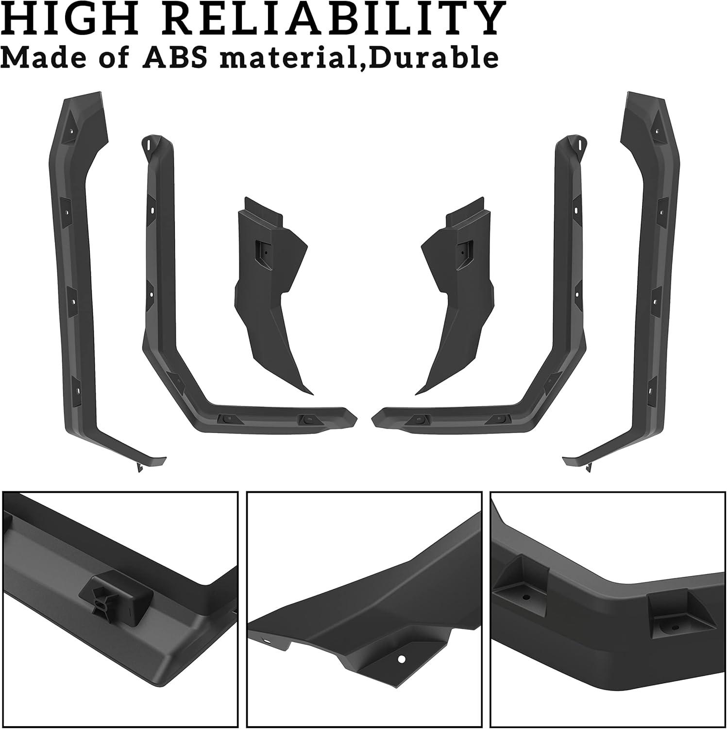 Easy to install; Package include: front & rear fender flares (6pcs) with mount hardware, installation manual; Need some drills during installation (Please refer to the installation video before your installation)