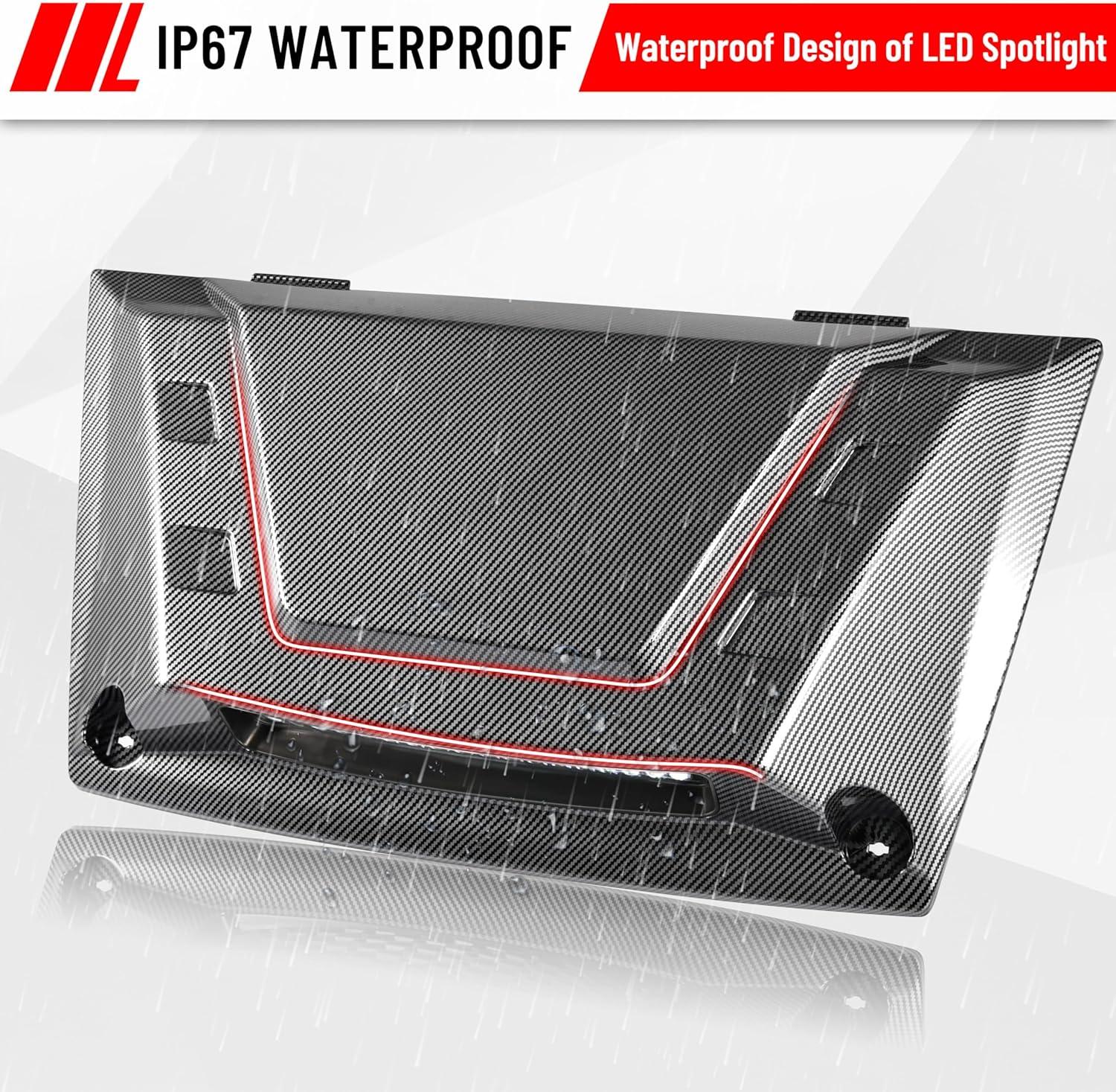 Cool appearance: There is a certain curvature on this hood surface, aerodynamic design and carbon fiber pattern match your vehicle perfectly, make your vehicle stand out in the crowd, light up the trail at dusk and night, escort your driving trip