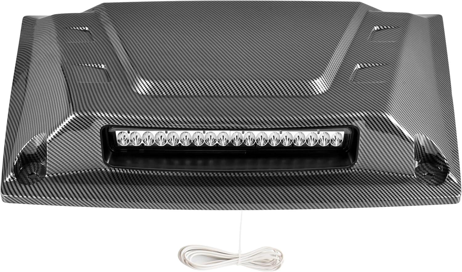 Quick & Easy Installation: Plug & Play for the LED spotlight; Package include: One Piece of Carbon Fiber Pattern Turbo Hood with LED Spotlight