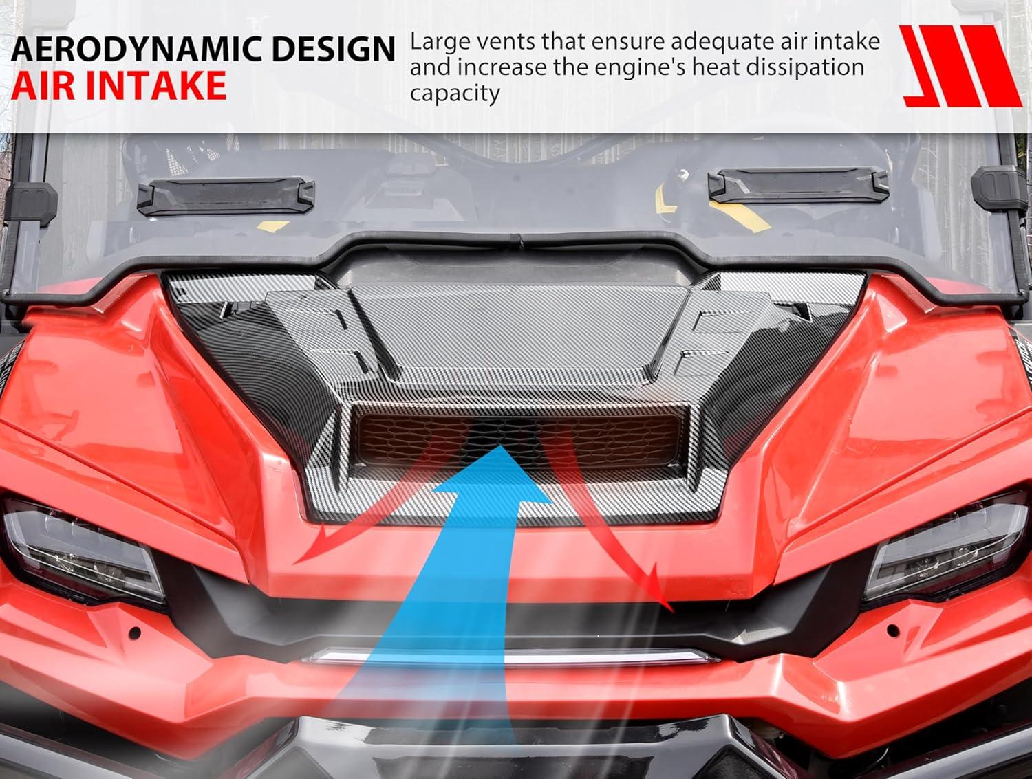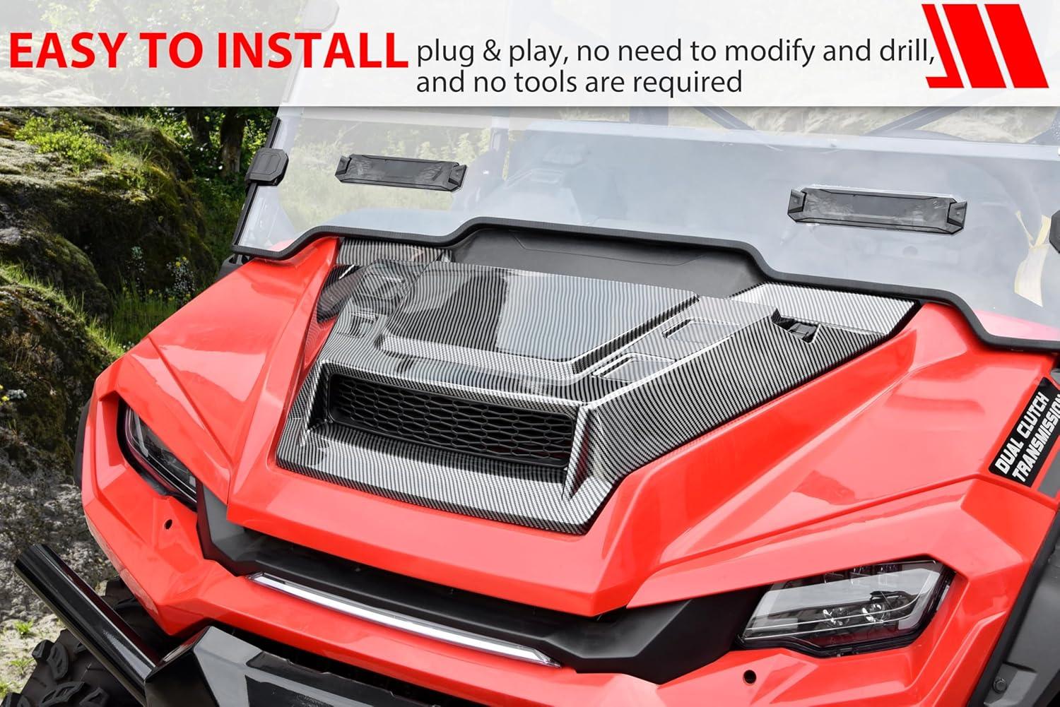 Good heat dissipation: This Turbo hood scoop kit has large removable vents that increase the heat dissipation capacity which help extend the life. The lightweight hood kit will not slow down your UTV's driving speed