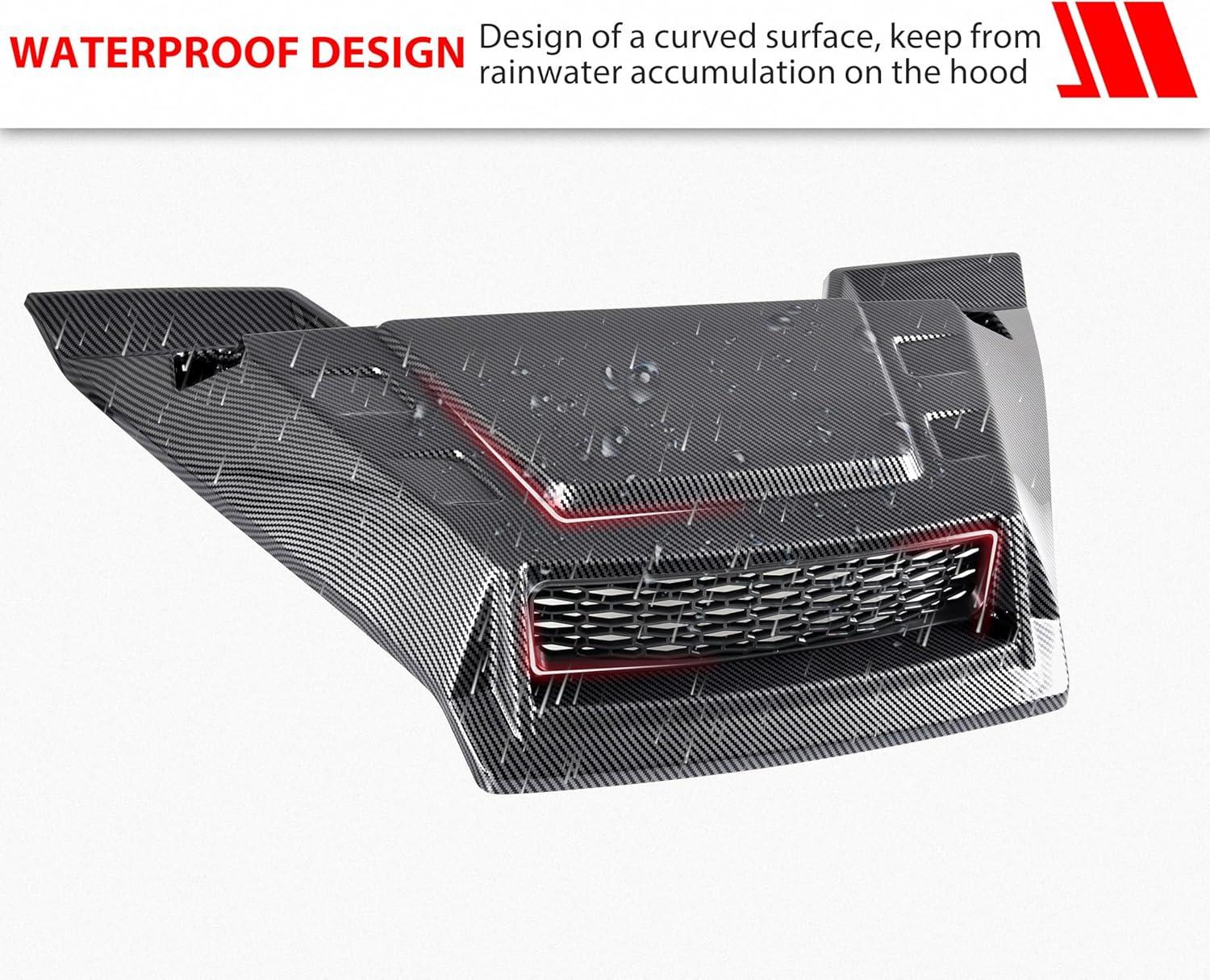 Quick & Easy Installation: Same interface as the existing hood, directly replaces OEM part, and no need to modify or drill, and no tools are required; Package include: One Piece of Carbon Fiber Pattern Hood Scoop with Mesh