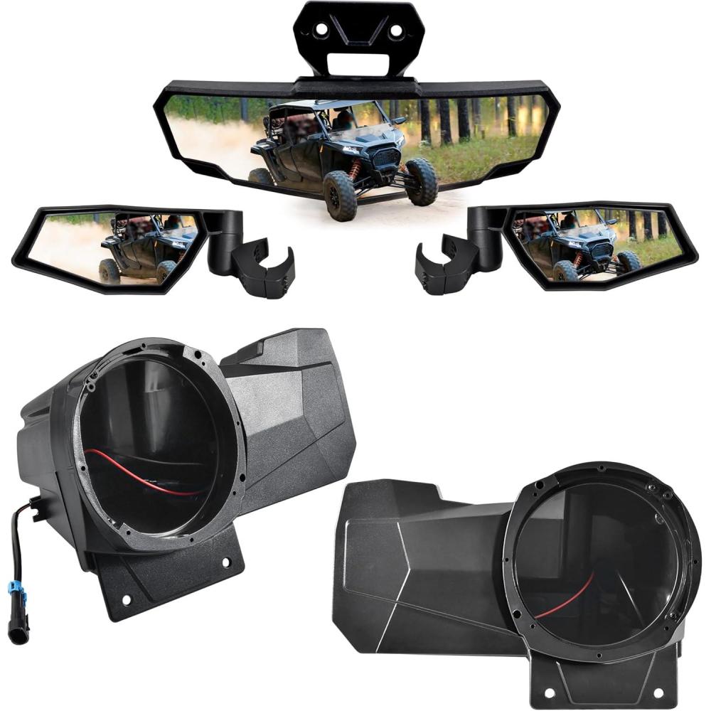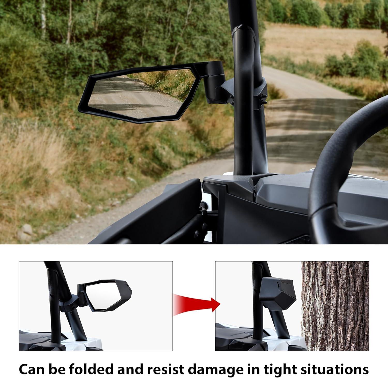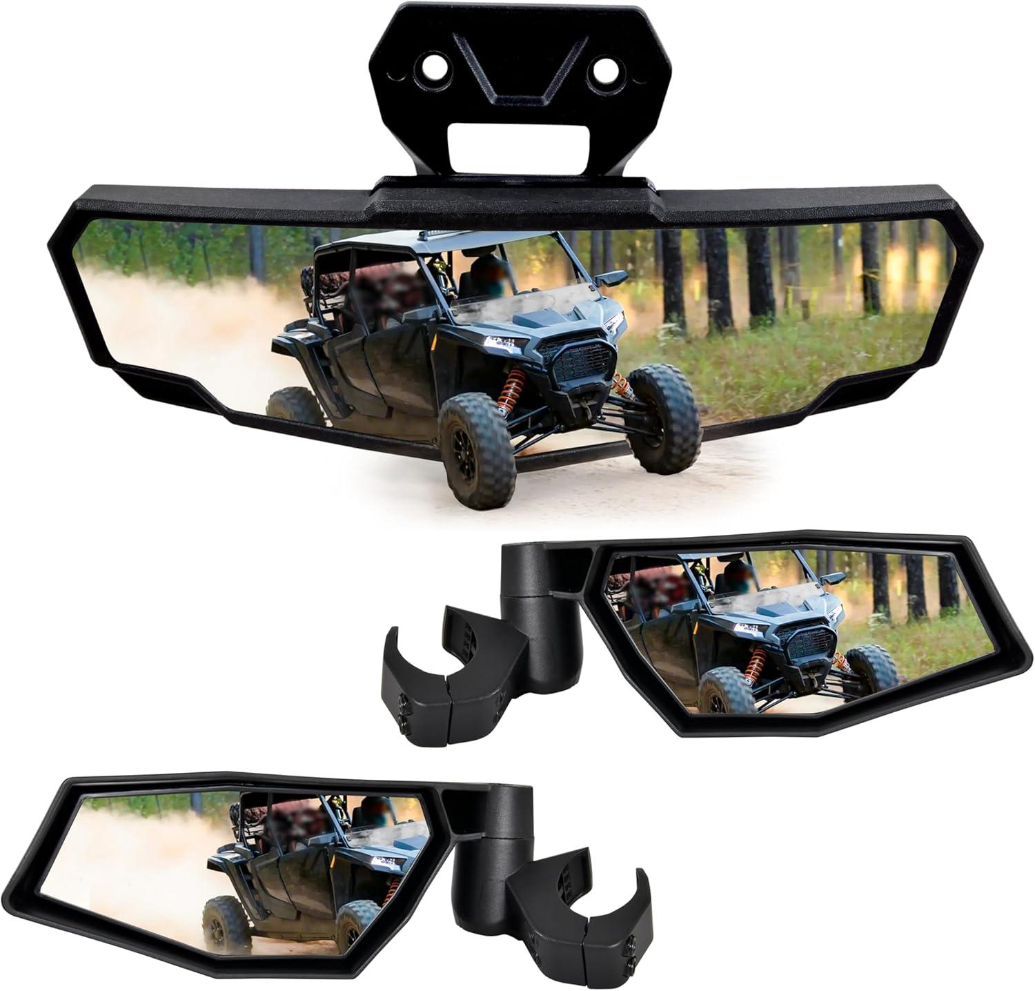 Package Include: 1 pair of folding side mirrors and 1pcs center mirror, all the mount hardware, installation instructions