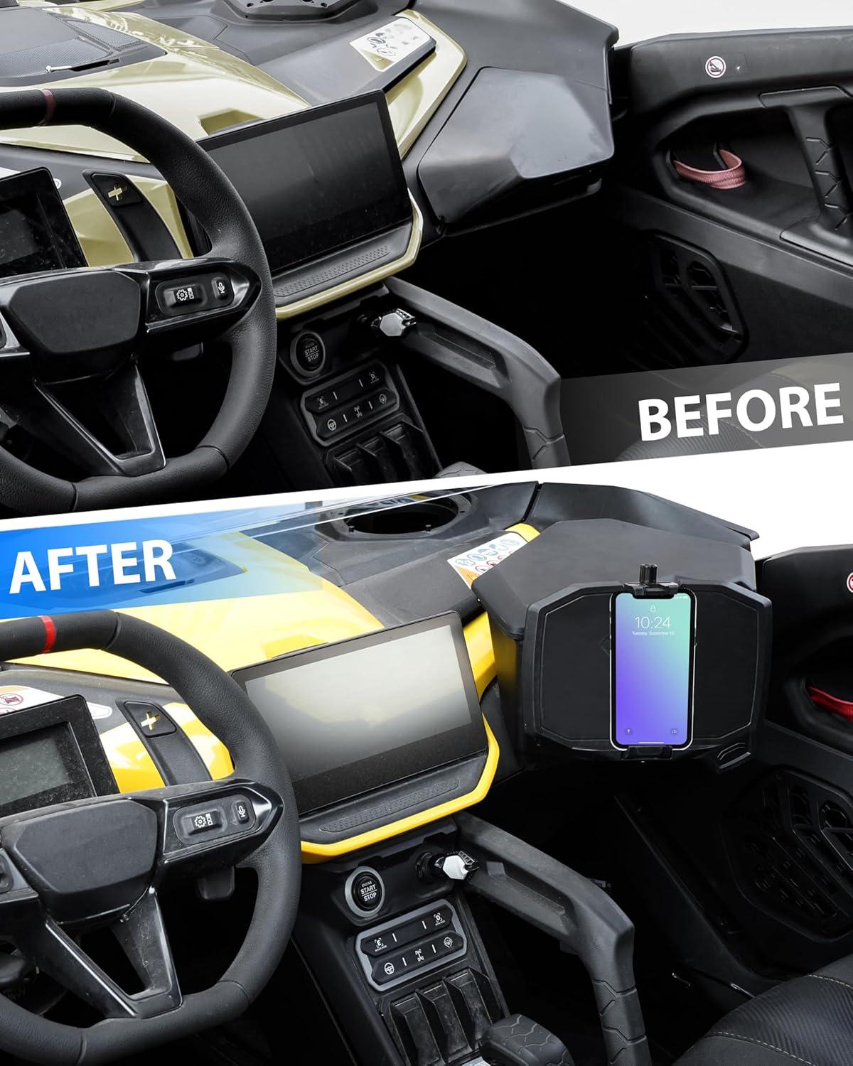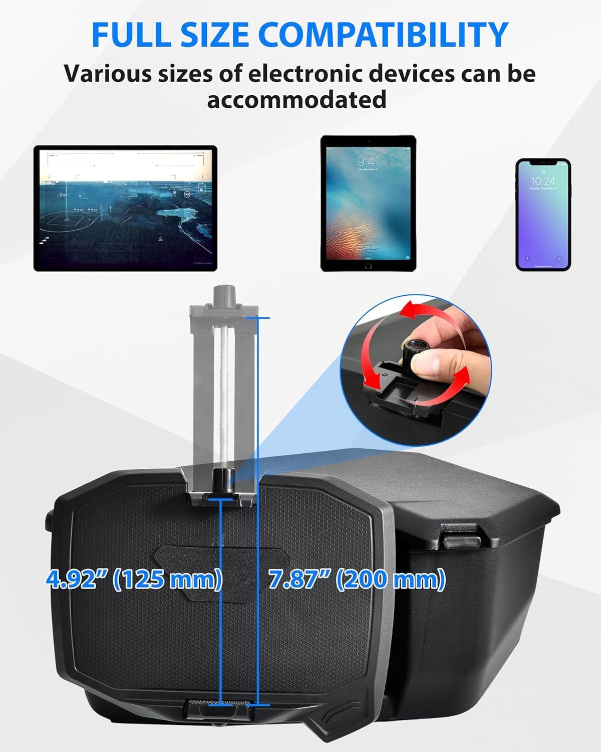 SAUTVS Tablet Phone Device Holder for Maverick R, Adjustable Electronic Device Holder GPS Phone Tablet Mount with Storage Box for Can Am Maverick R MAX X RS 2024+ Accessories (#715007176)