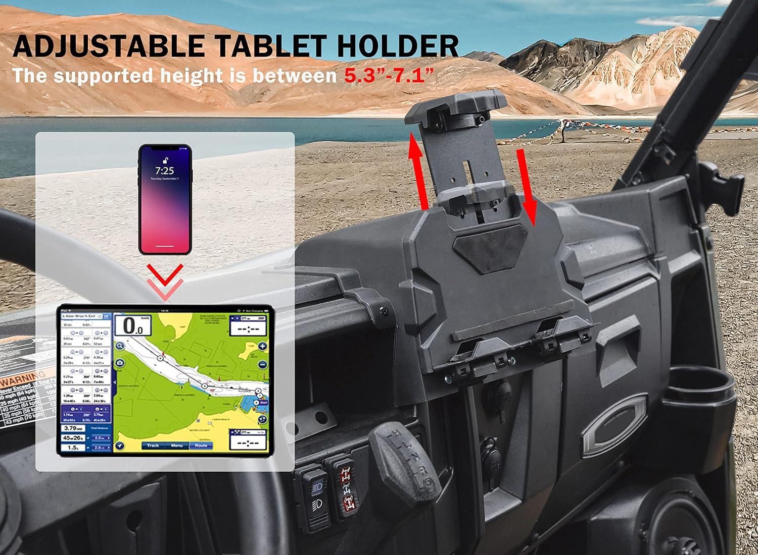 Provide extra storage while take up no space, directly installed above the dash, a small storage box with an GPS holder; Add storage capacity and it is easier to reach the dash 12V outlet for device charging