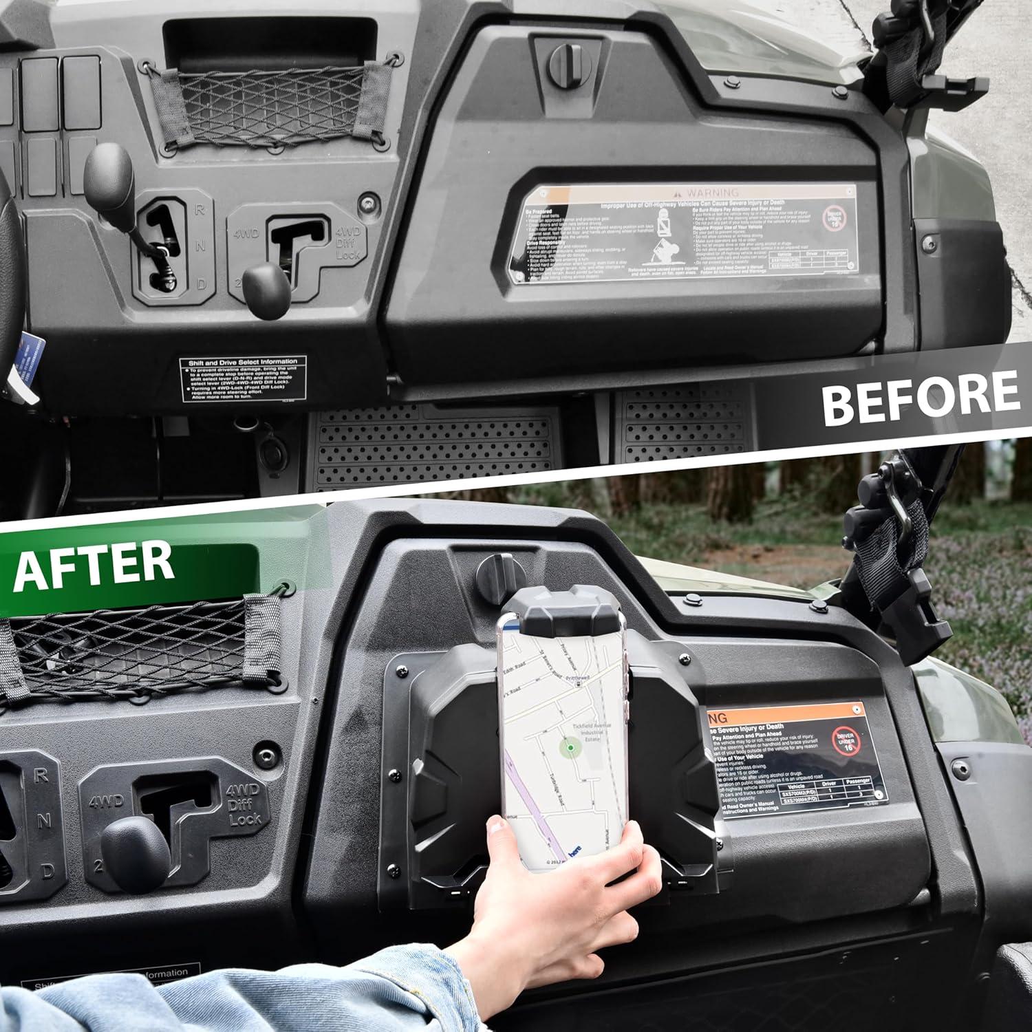 The UTV phone holder mount for Honda Pioneer 700 is made of PP material, which is solid and wear resistant, and use 3D scanning technology to ensure the precise fit.