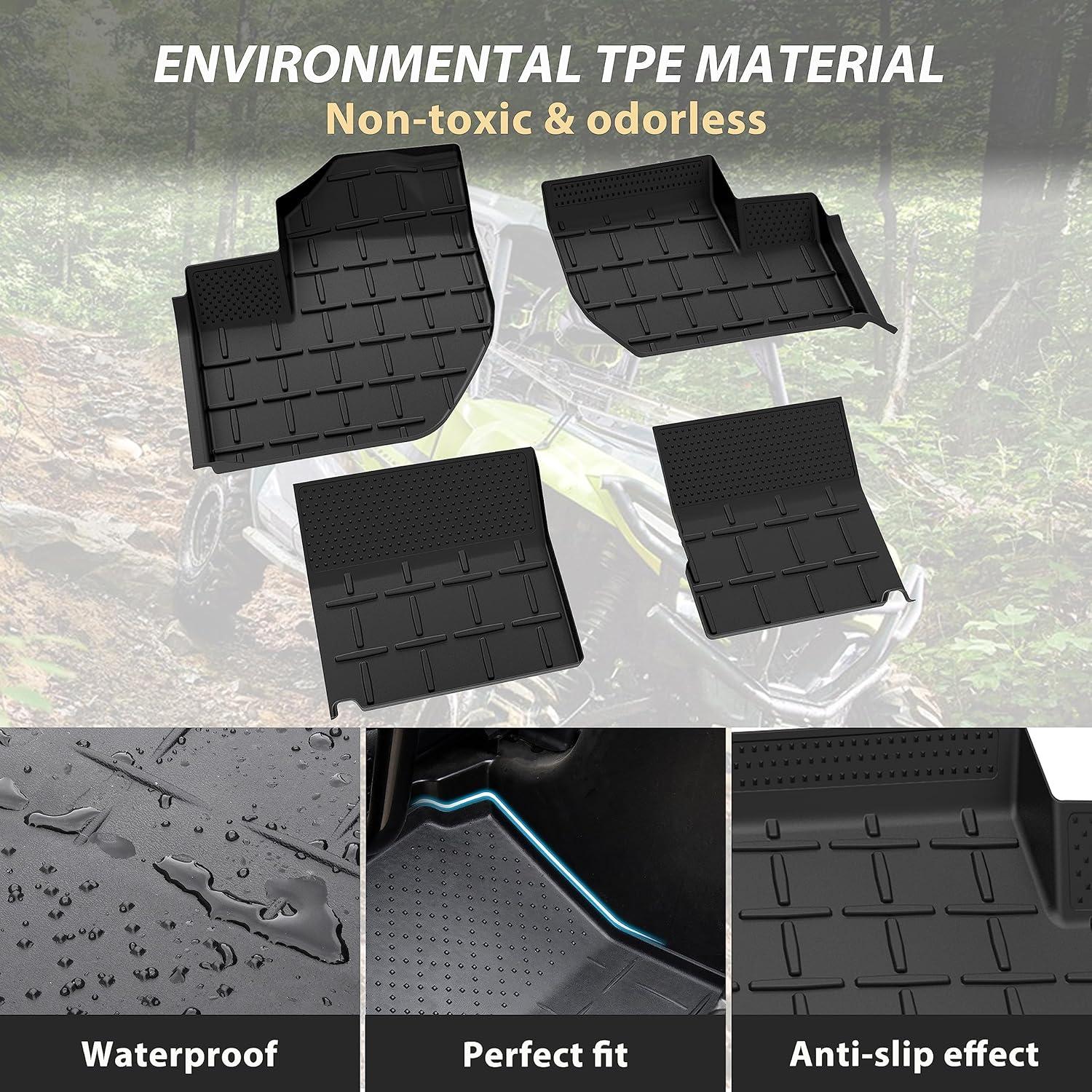 SAUTVS TPE Anti-Slip Floor Mats Front Row Floor Liners for Yamaha Wolverine RMAX4 1000 2021-2025, Wolverine X4 850 2018-2020 Accessories, All Weather Protection Slush Mats(4PCS)