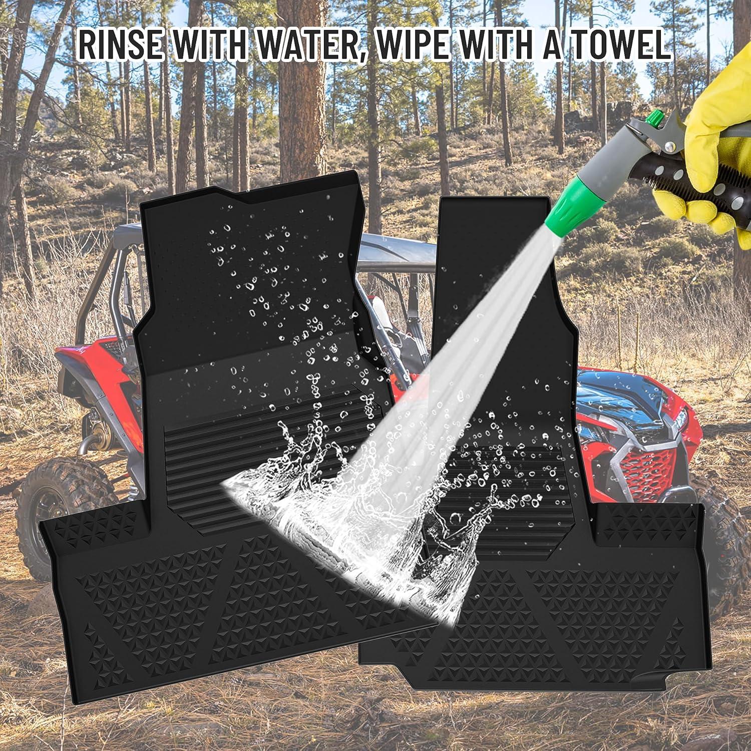 NON-SLIPPERY & EASY TO CLEAN:Work well with the vehicle, make sure to grip the carpet firmly and hold the mats in place, won't shift, keep the stability during the driving and ensure your driving safety; Three-dimensional raised design, won't accumulate stains, and if it is dirty, simply remove the floor liner from your vehicle and clean it off with a hose