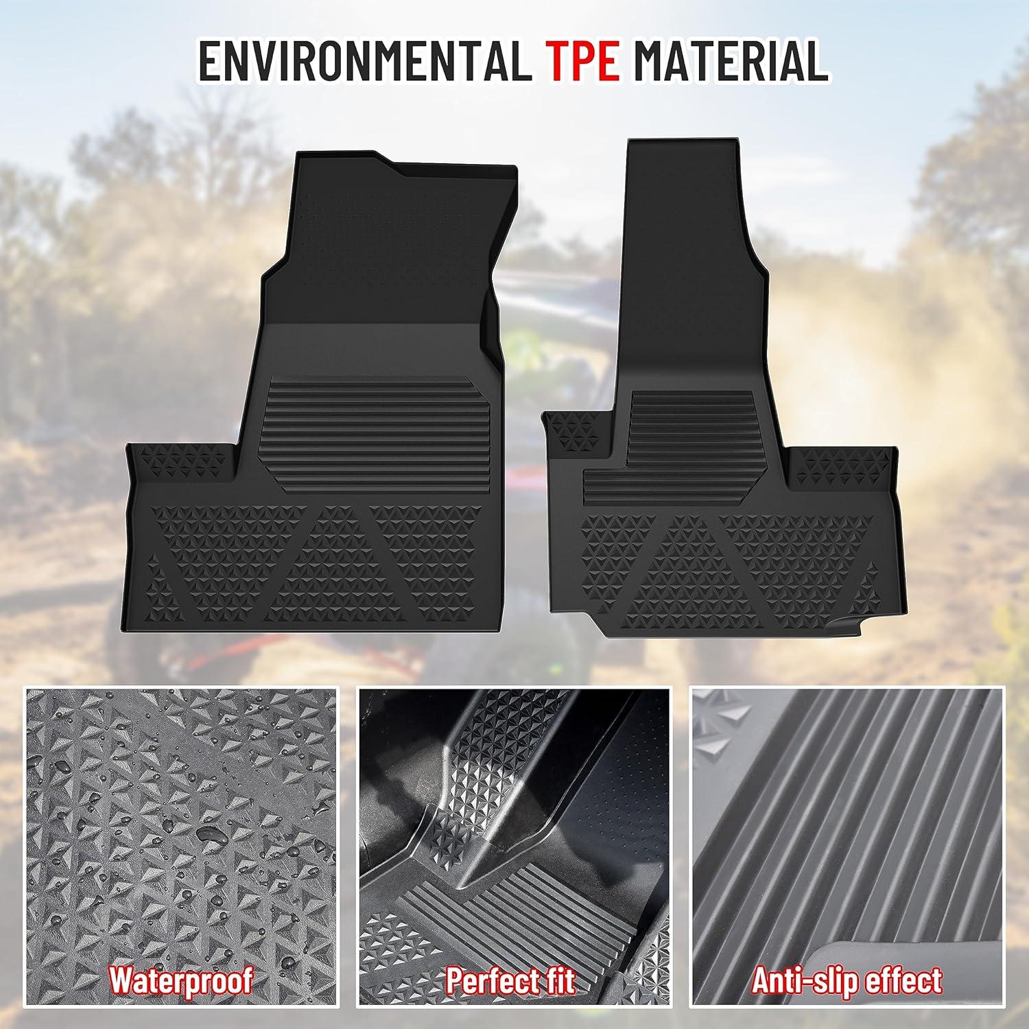 HIGH QUALITY MATERIALS & ALL WEATHER PROTECTION:The TPE material ensures 100% non-toxic, 100% odorless, 100% safe, recyclable and environmentally friendly, which is mostly used in medical and infant industries, won't release any toxic or harmful substances, even in the hot weather, 3 times better temperature resistance than PVC; Won't deform at high temperature and remain flexible in cold weather, excellent rugged foot feeling and durable grip, make you enjoy the best driving experience