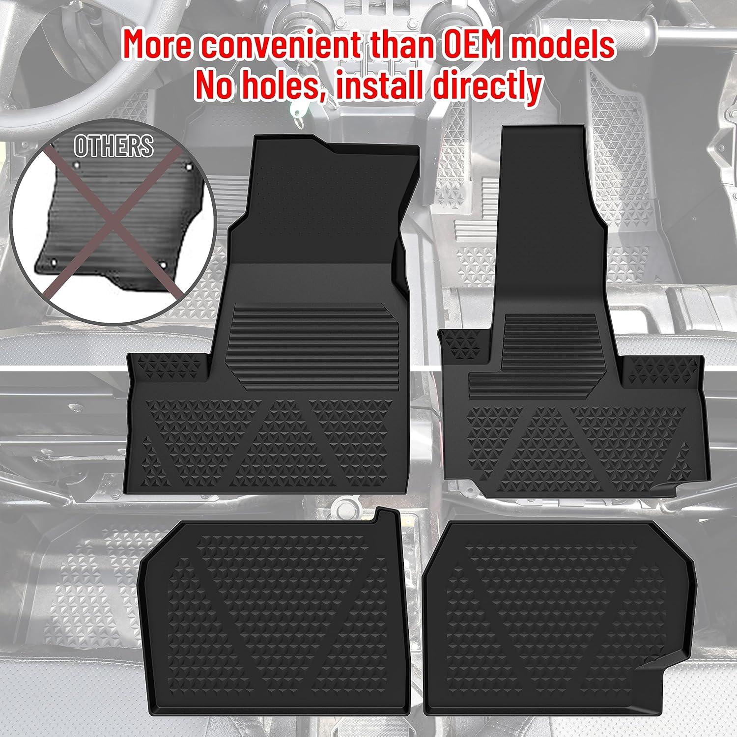 QUICK INSTALLATION:No need for drilling, direct installation, more convenient than OEM models;Package include: 4PCS Floor Mats; NOTE: Please lay out your mat in a warm place or use hair dryer to heat the folding parts caused by transportation, the mat will return to its previous shape