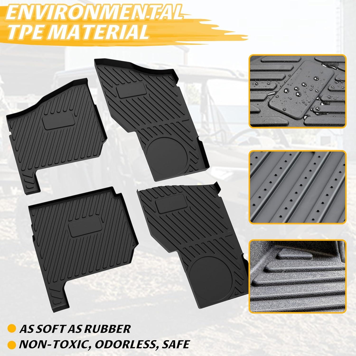 HIGH QUALITY MATERIALS & ALL WEATHER PROTECTION – The TPE material ensures 100% non-toxic, 100% odorless, 100% safe, recyclable and environmentally friendly, which is mostly used in medical and infant industries, won't release any toxic or harmful substances, even in the hot weather, 3 times better temperature resistance than PVC; Won't deform at high temperature and remain flexible in cold weather, excellent rugged foot feeling and durable grip, make you enjoy the best driving experience