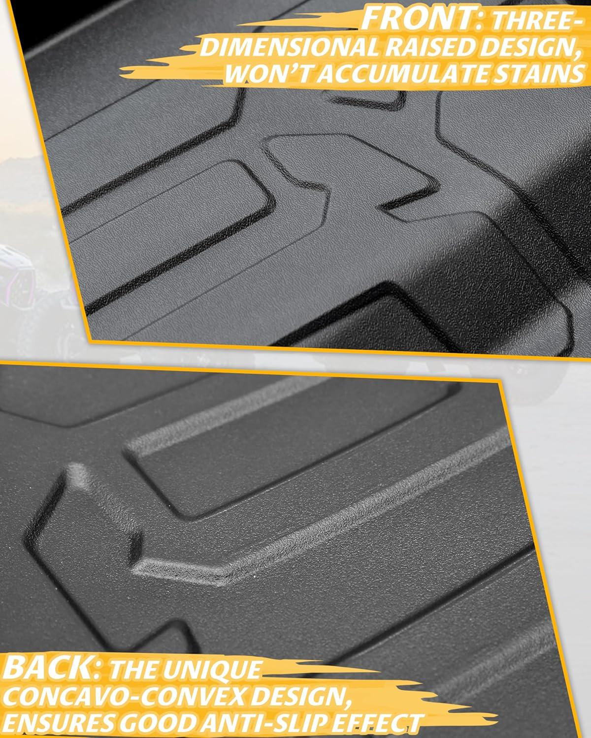 NON-SLIPPERY & EASY TO CLEAN – Work well with the vehicle, make sure to grip the carpet firmly and hold the mats in place, won't shift, keep the stability during the driving and ensure your driving safety; High-sided and three-dimensional raised design, won't accumulate stains, and if it is dirty, simply remove the floor liner from your vehicle and clean it off with a hose
