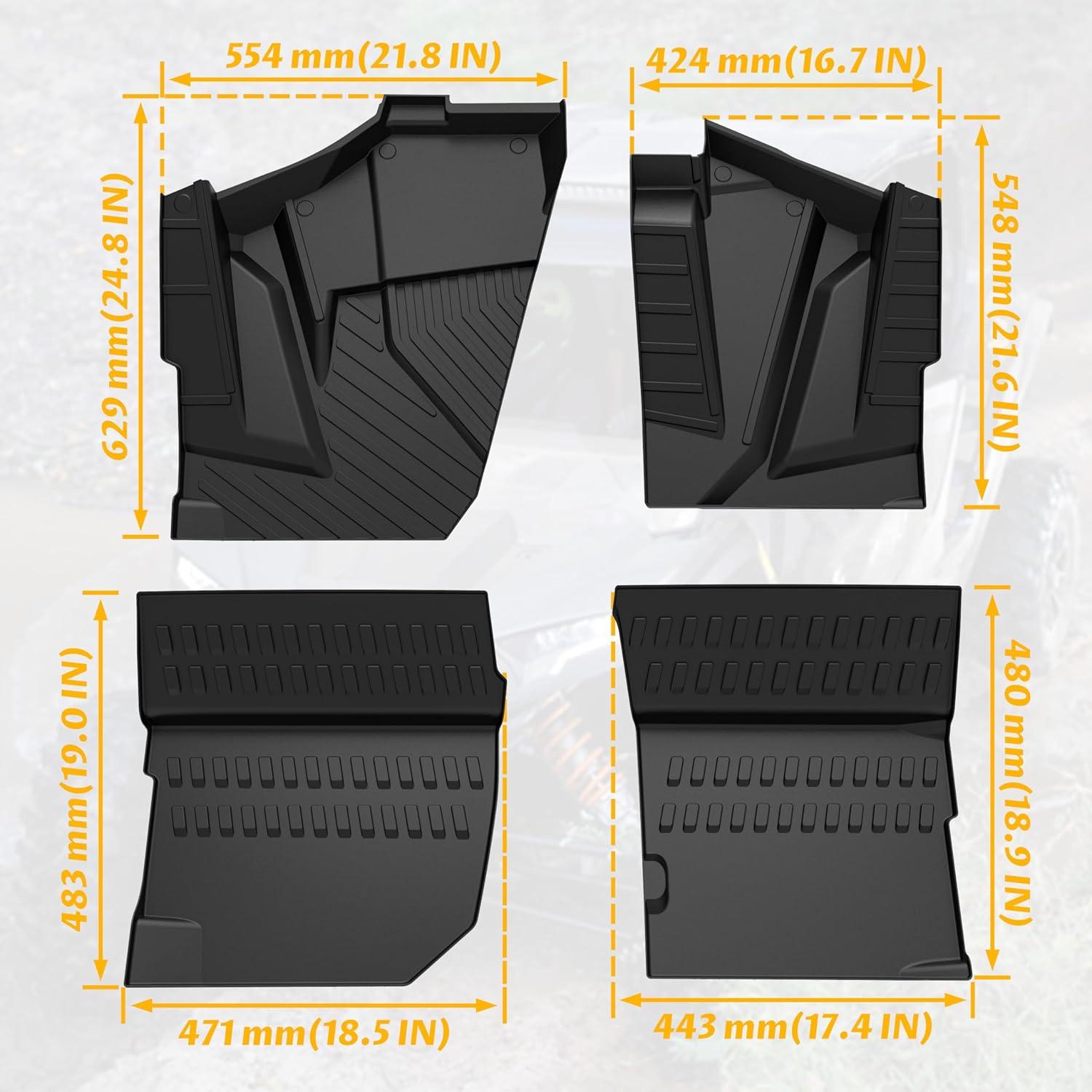 SAUTVS TPE Anti-Slip Floor Mats Front Row Floor Liners for 2021-2025 Yamaha Wolverine RMAX 1000 RMAX2 RMAX4, 2018-2020 Wolverine X2/X4 850 Accessories, All Weather Protection Slush Mats