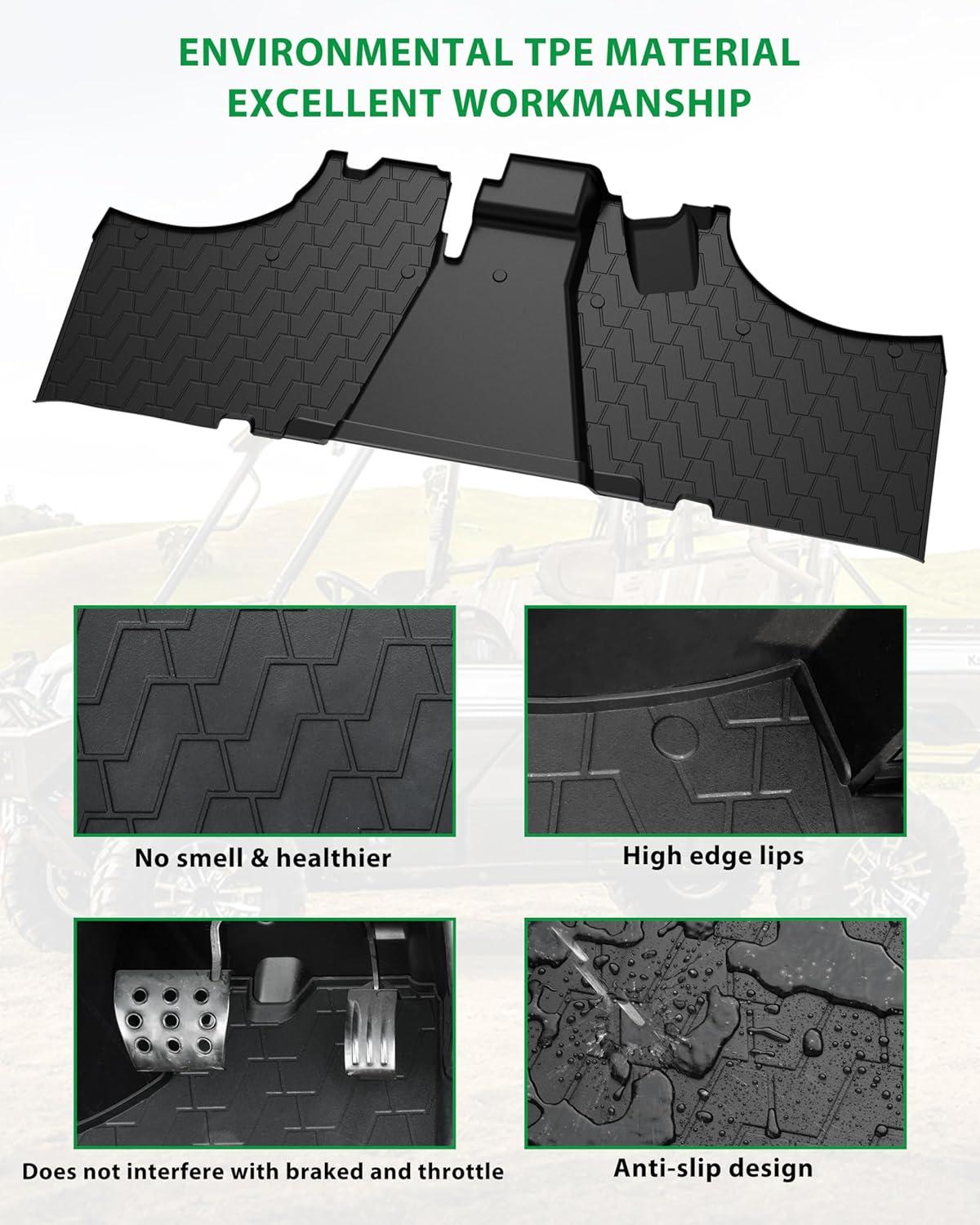 HIGH QUALITY MATERIALS: The TPE material is non-toxic, odorless, safe, and won't release any toxic or harmful substances, even in the hot weather; 3 times better temperature resistance than PVC; Won't deform at high temperature and remain flexible in cold weather; Excellent rugged foot feeling and durable grip, make you enjoy the best driving experience