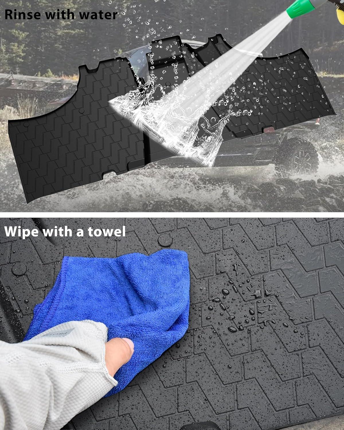EASY TO CLEAN: Work well with the vehicle, make sure to grip the floor and hold the mats in place and keep the stability during the driving and ensure your driving safety; High edge lips keep the dust inside the foot pads and won't stain your vehicle; Three-dimensional raised design won't accumulate stains, and if it is dirty, simply remove the floor liner from your vehicle and clean it off with a hose