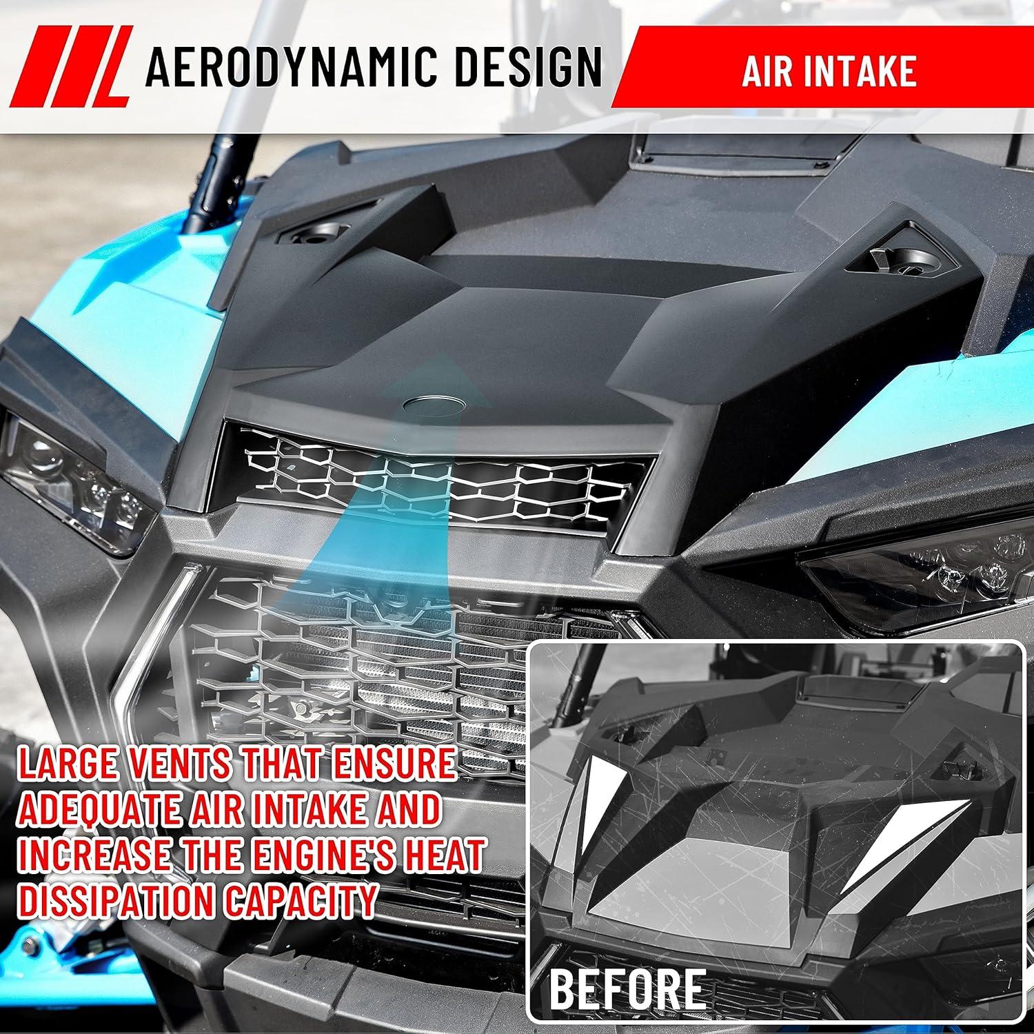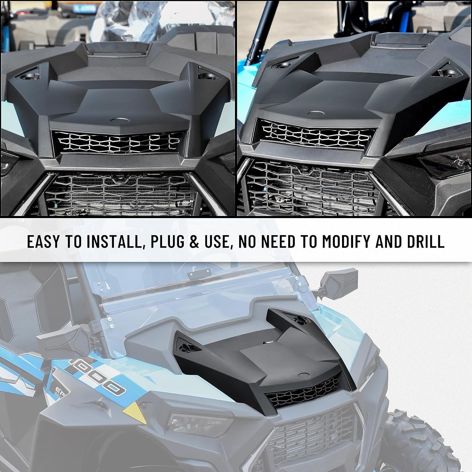 【Cool appearance】-There is a certain curvature on this hood surface, keep from rainwater accumulation on the hood and working in all weather conditions; Cool appearance makes your vehicle stand out in the crowd
