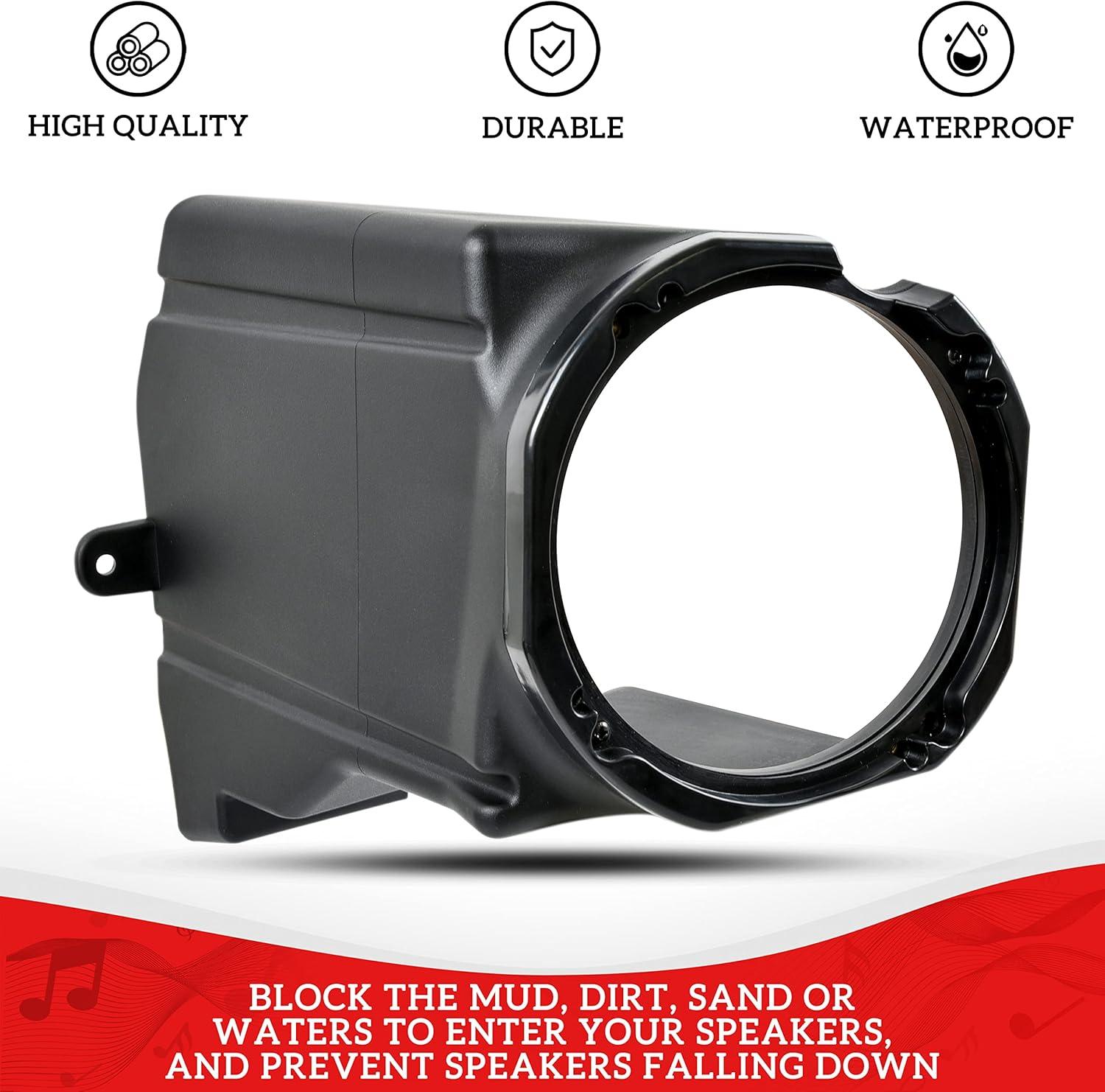 Under front dashboard, provide mounting brackets for speakers while take up no space; Block the mud, dirt, sand or waters to enter your speakers, and prevent speakers falling down