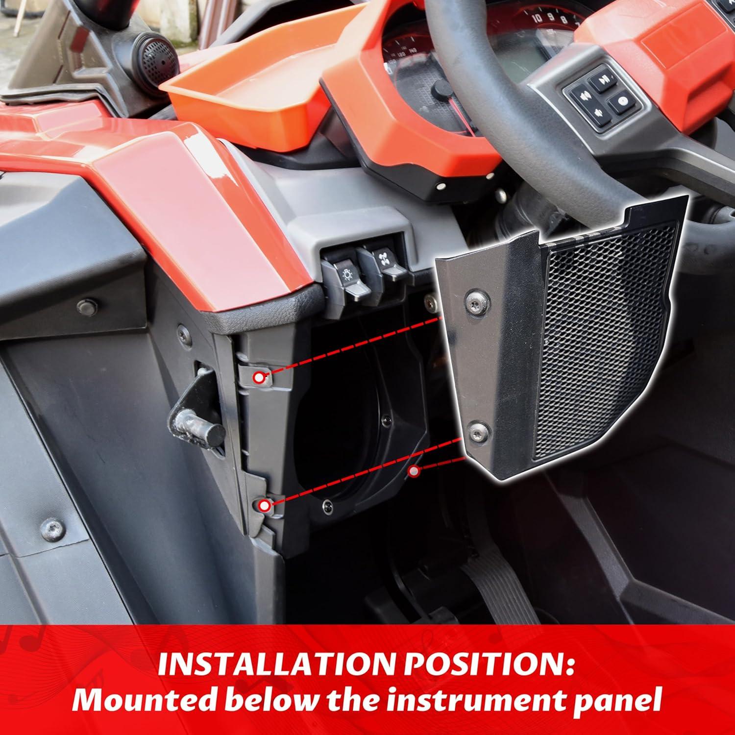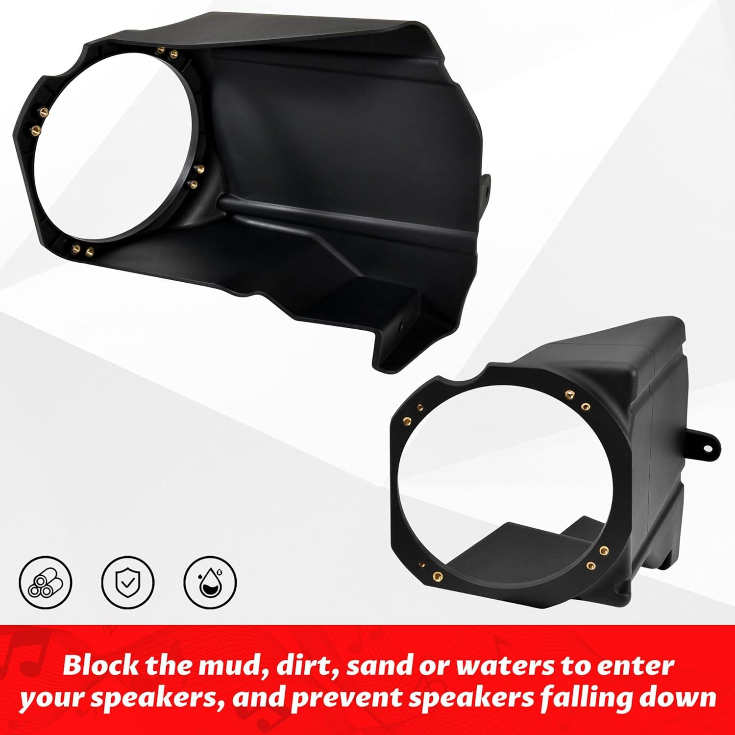 Under front dashboard, provide mounting brackets for speakers while take up no space; Block the mud, dirt, sand or waters to enter your speakers, and prevent speakers falling down
