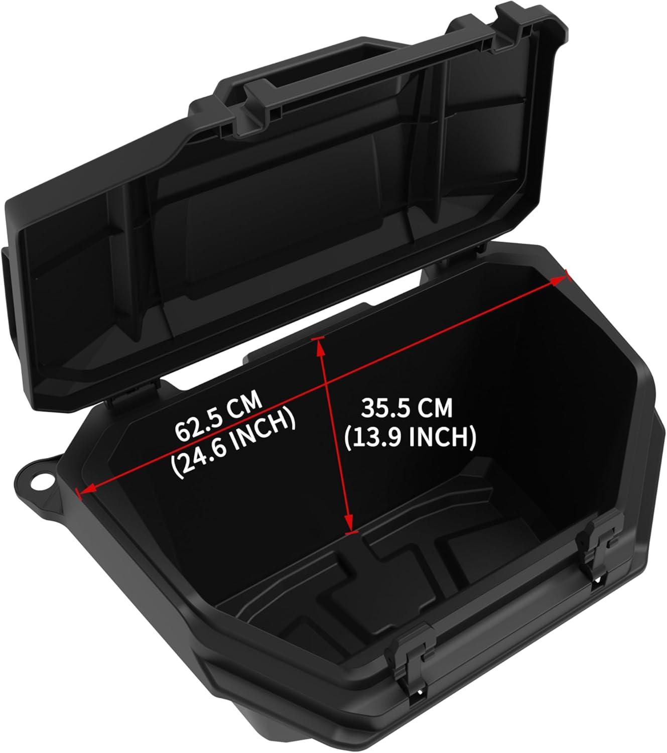 Quick and easy to install and remove by the two lock & ride assemblies at the bottom, a perfect match for your vehicle (please refer to the installation video in the listing before installation); Package include: 1pcs rear cargo storage box with all hardware; NOTICE: This storage box is not a cooler, please notice that before purchasing.